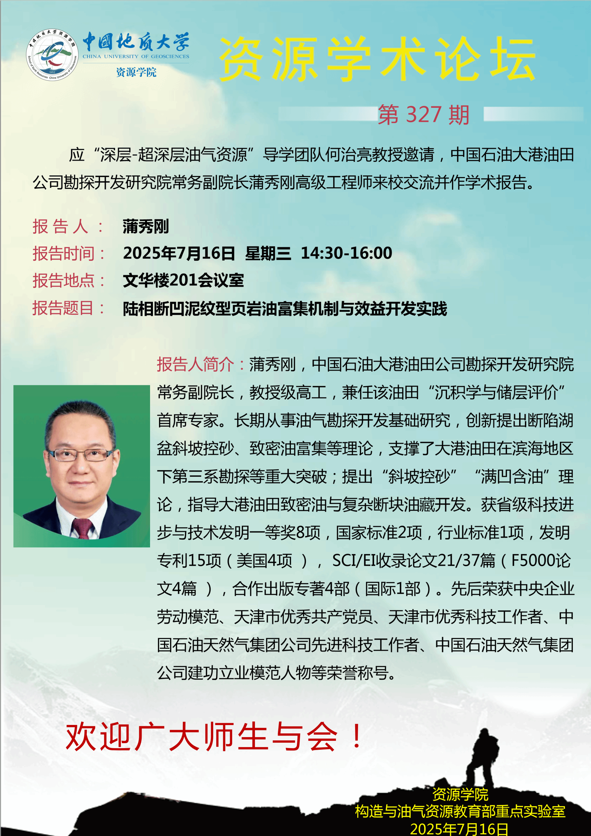 【7月16日】第327期资源学术论坛:蒲秀刚学术报告