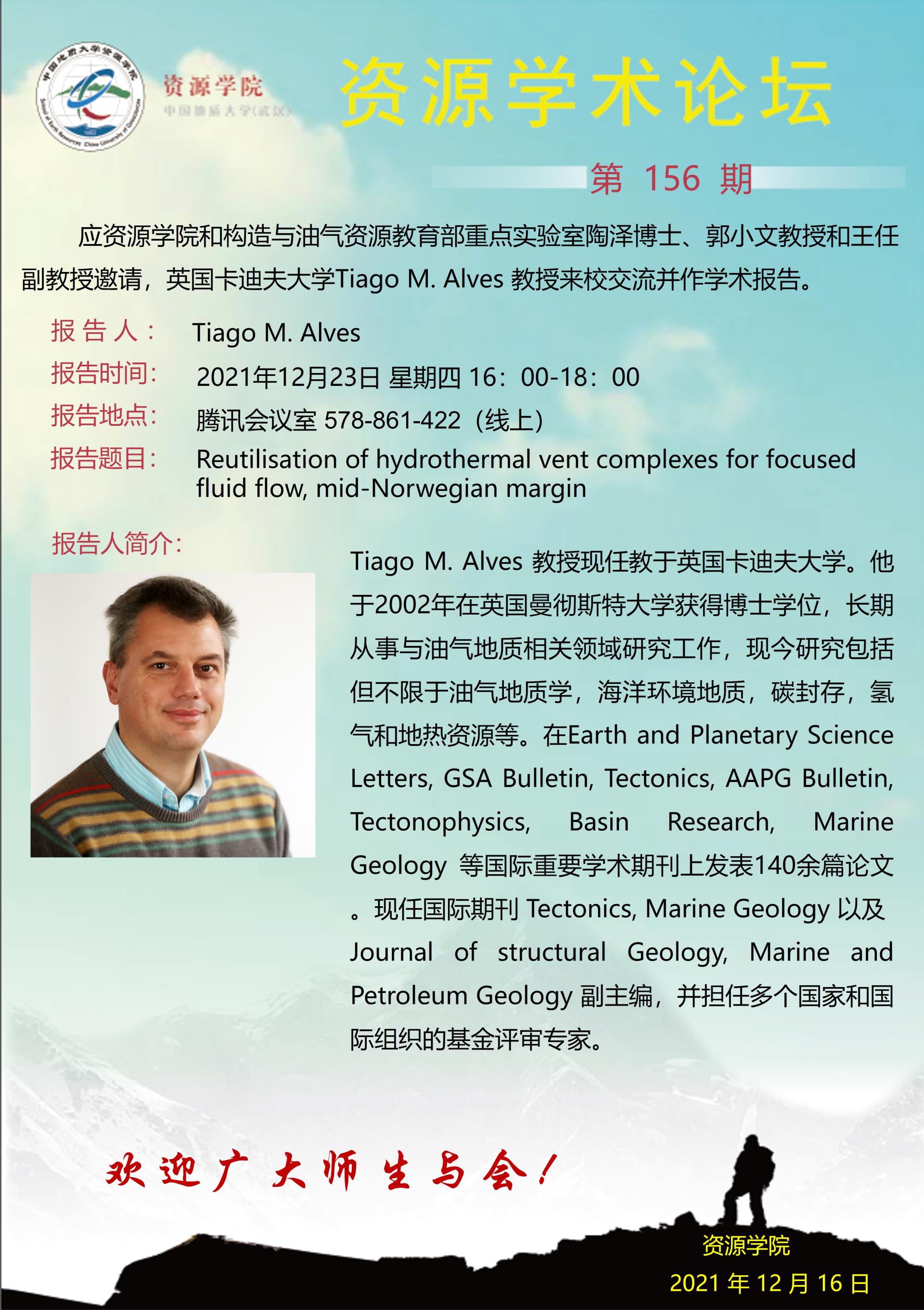 【12月23日】第156期资源学术论坛:Tiago M.Alves学术报告