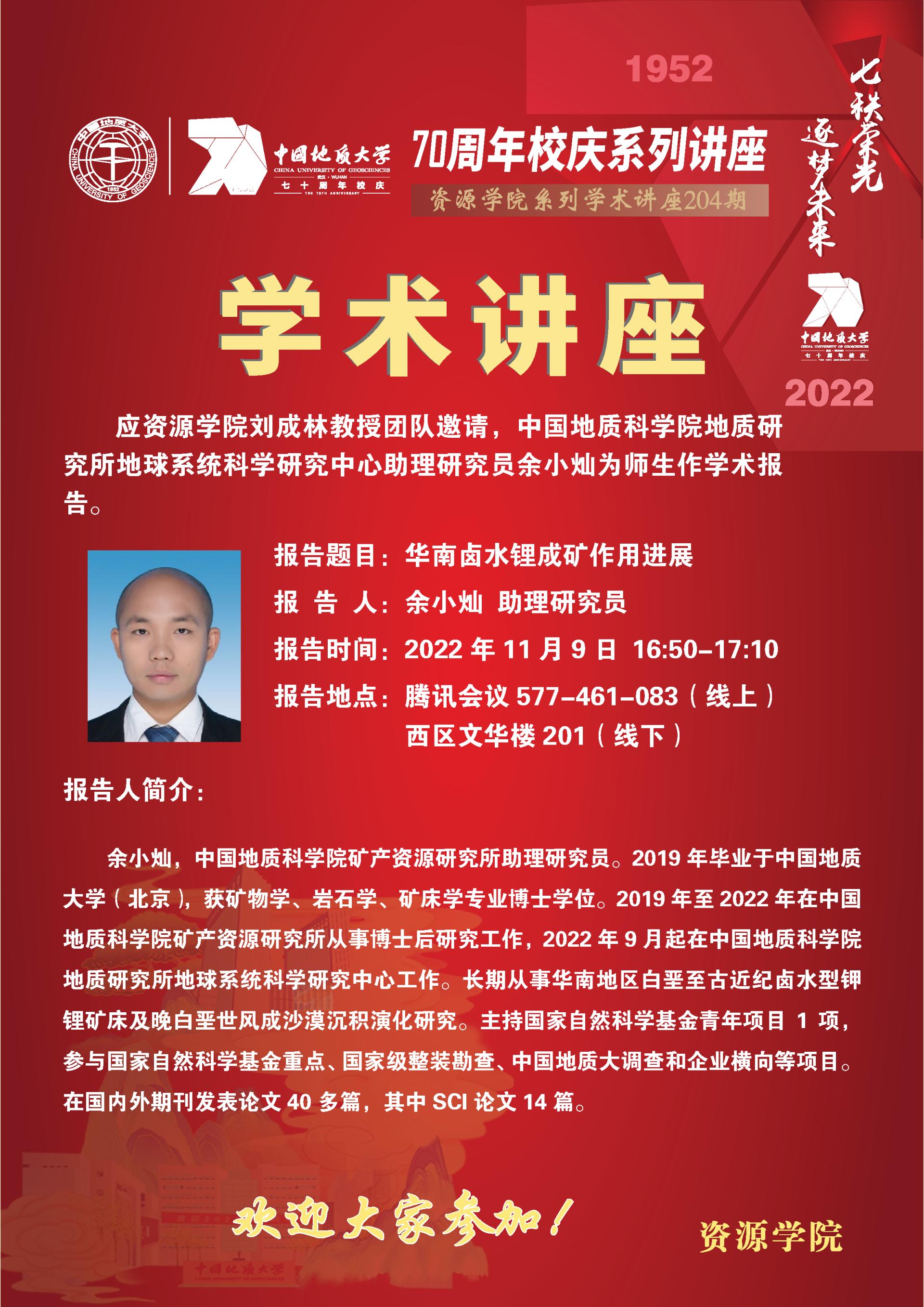 【11月9日】第204期资源学术论坛:余小灿学术报告