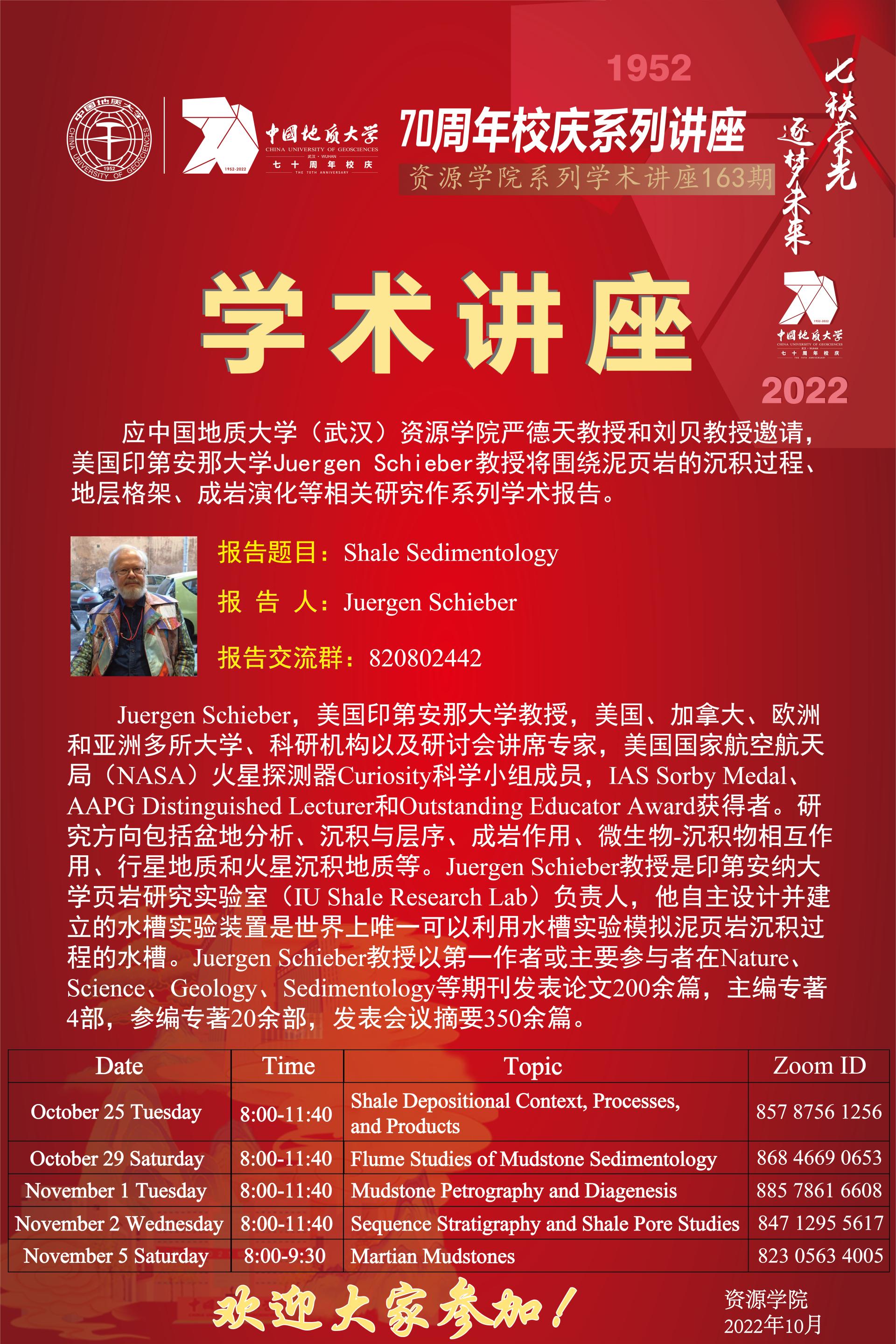 【10月25日-11月5日】第163期资源学术论坛:Juergen Schieber学术报告