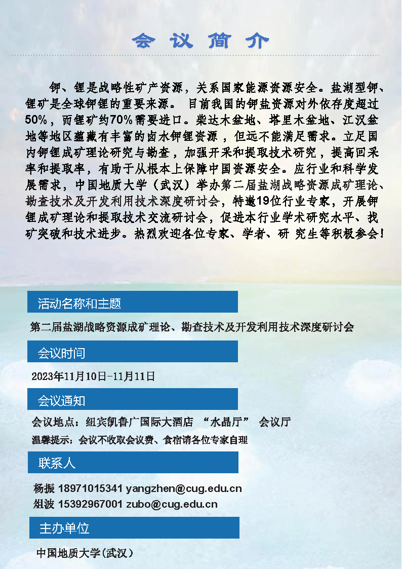 【会议通知】第二届盐湖战略资源成矿理论、勘查技术及开发利用技术深度研讨会