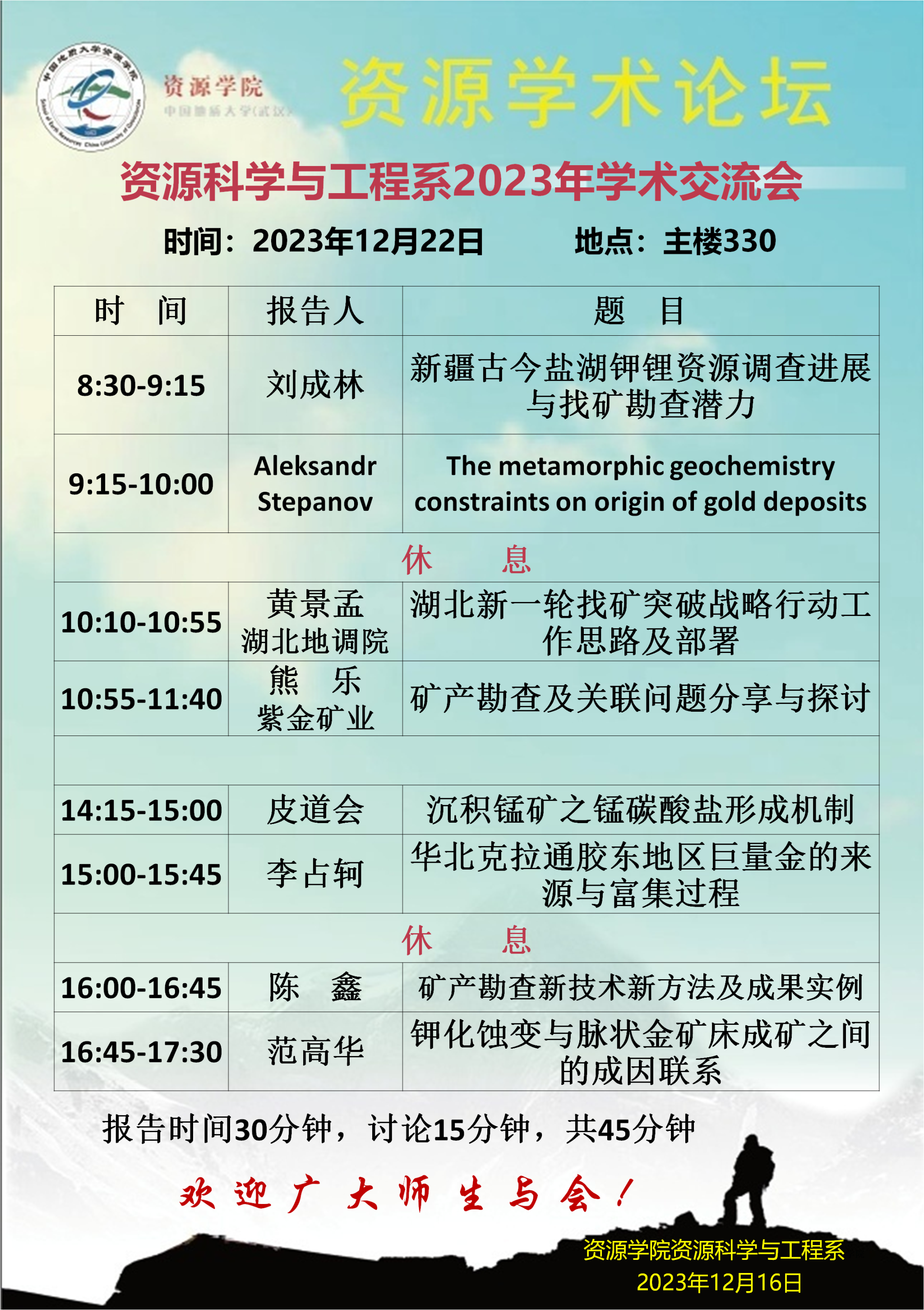 【12月22日】资源科学与工程系2023年学术交流会