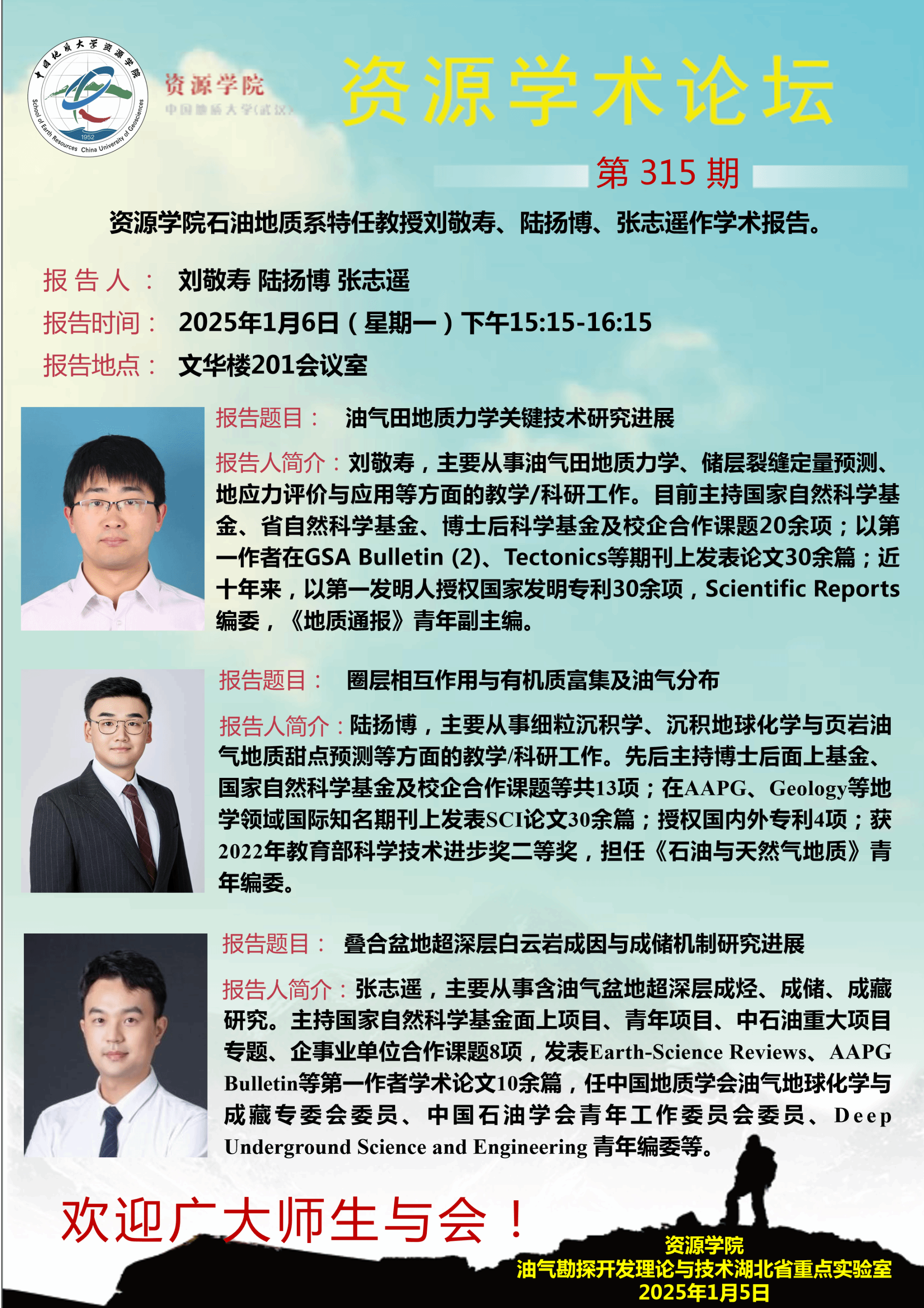 【1月6日】第315期资源学术论坛:刘敬寿、陆扬博、张志遥学术报告