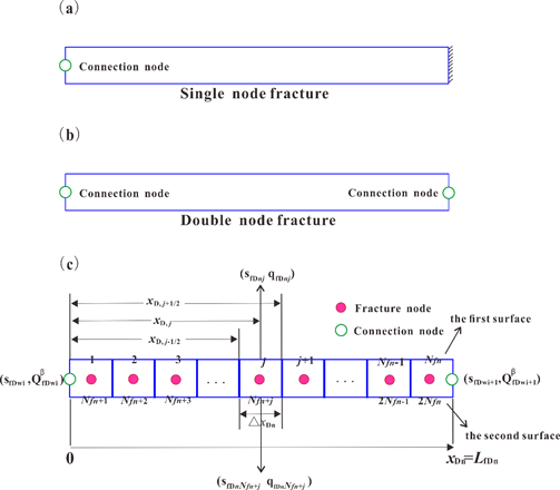许多裂缝可能存在于碳酸盐岩、页岩、砂砾岩、火山岩和其他坚硬岩层中。裂缝与地层间具有强非均质性,呈现双孔介质特征,精确描述裂缝与基质间的流体交换是认识裂缝导流作用的关键。目前,模拟裂隙性地层内流体流动的主要方法是双孔介质模型结合数值模拟,但是该手段存在如下三方面问题:(1)随着裂缝-地层间非均质性增加,数值模型的计算误差将放大,甚至算法无法收敛;(2)数值方法依靠网格化处理,将产生巨大数据体,计算速度缓慢,且难以刻画复杂形态裂缝形态;(3)双孔介质模型仅限于特征体元(REV)尺度,无法模拟离散性裂缝网络。针对以上科学问题,公司湖北省勘探开发理论与技术重点实验室与tyc5997太阳集团“油气藏渗流力学与数值模拟”团队特任教授王磊及其合作者提出了一种在Laplace空间耦合地层流动和裂缝流动的模型,该模型地层流动采用解析求解,因此在地层中不需要划分复杂的结构及非结构网格就可显示表达裂缝特征,大大节省了计算量,裂缝模型对Fredholm方程进行数值离散,在裂缝壁面通过流量-压力相等条件进行耦合,因此称为半解析模型,对于裂缝交叉点提出了自适应物质平衡方程,因此不需要判断裂缝交叉点流体流动方向,建立一种自动升尺度精确模拟裂缝的方法。该研究系统分析了离散裂缝网络压力动态变化特征,方法的提出为后续离散裂缝储层试井分析及产能评价工作奠定理论基础。