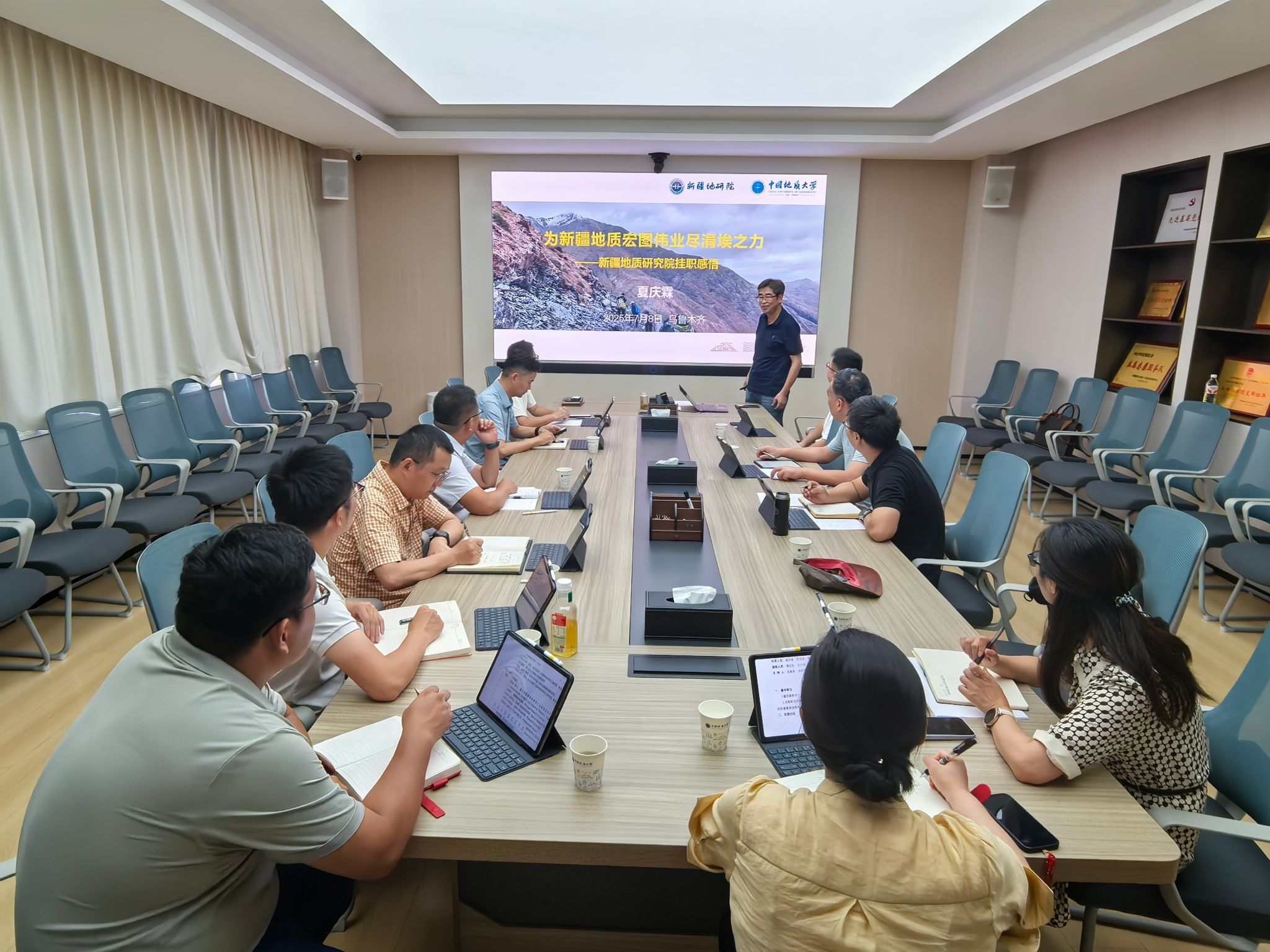 资源信息工程系夏庆霖教授介绍新疆地质研究院挂职经历,围绕挂职期间工作内容、工作特点及成效、个人感悟等方面作了详细分享,并结合公司实际发展提出建议。与会人员围绕公司“拥抱新疆”战略的发展路径开展深入交流讨论。
