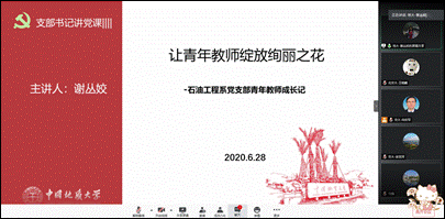 协同联动,实现优势共享。联合主题党日活动在高亢的国歌中拉开帷幕,重温入党誓词后,石油工程系教师党支部书记谢丛姣和北京交通大学土建公司建工系教师党支部书记向宏军分别介绍了党支部的基本情况。两个支部均首批入选全国“双带头人”教师党支部书记工作室创建单位,支部党员均为27人,所在系均为传统专业并以年轻教师为主。