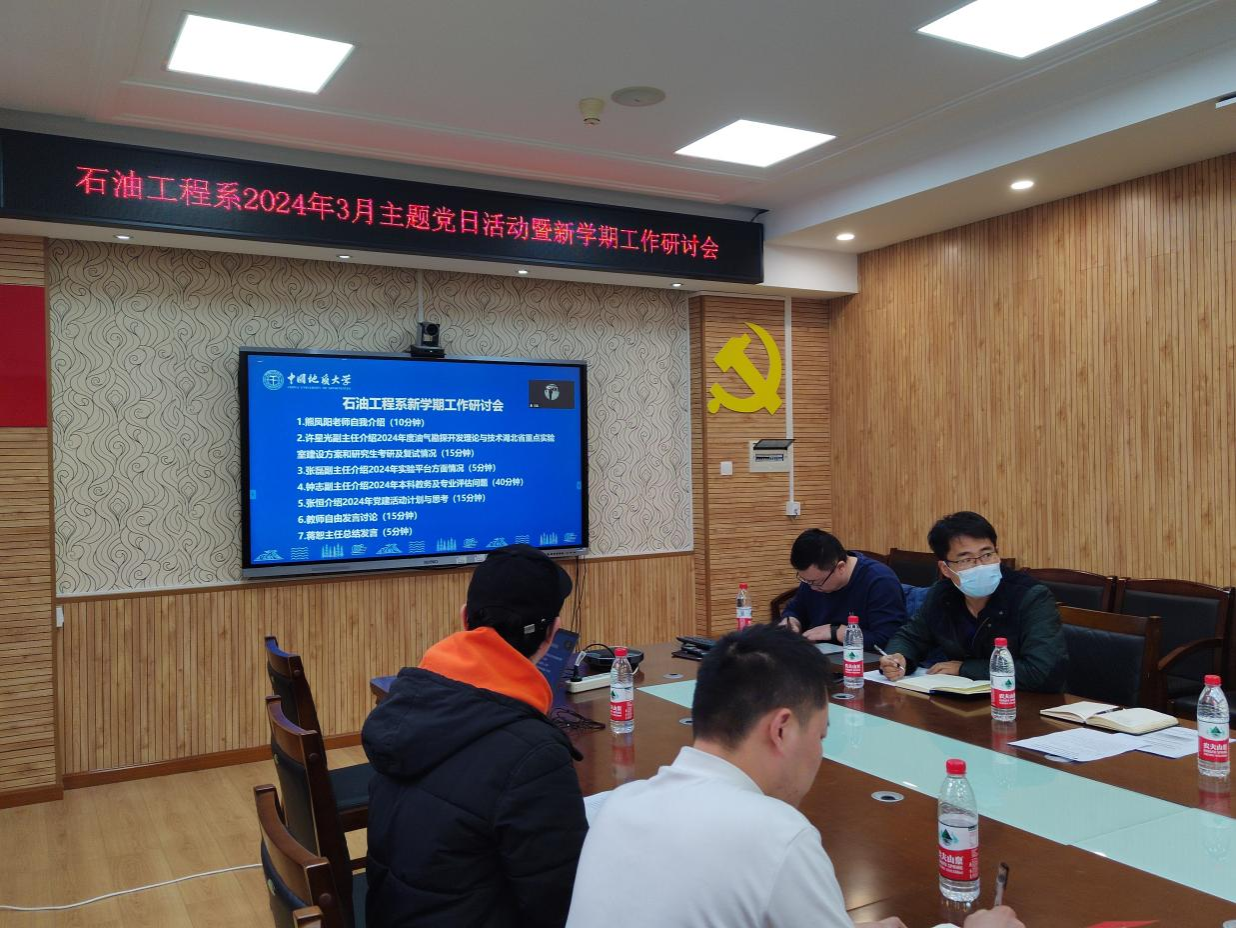 (通讯员 孙艳坤)3月28日,tyc5997太阳集团石油工程系党支部开展2024年3月主题党日活动和新学期工作研讨,会议主题为“学习全国两会精神,砥砺奋进担当作为——直面问题、勠力同心,推动石油工程团队建设”。石油工程系全体教师、员工党支部书记参加会议。支部书记张恒主持会议。