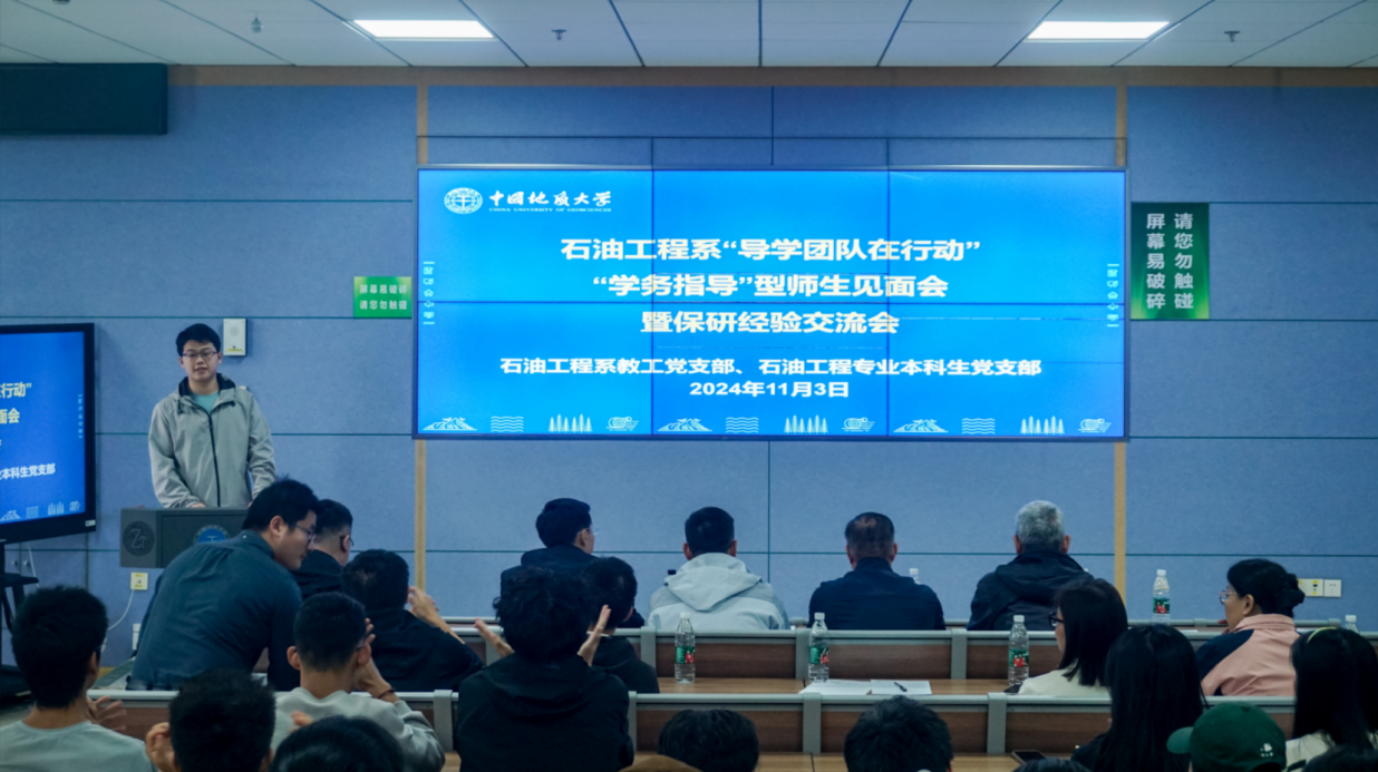(通讯员张蔚张恒)2024年11月3日,tyc5997太阳集团石油工程系师生党支部在东教楼C0109教室联合召开“导学团队在行动”系列活动之“学务指导”型师生见面会暨保研经验交流会。资源公司党委副书记谭文伦,副经理钟志,石油工程系主任李恒、党支部书记张恒、科研教学团队教师(导学团队)、2024级本科班主任及党员责任区负责人,2024级本科生、2021级本科生代表出席会议。会议由石油工程专业本科生党支部书记张蔚主持。