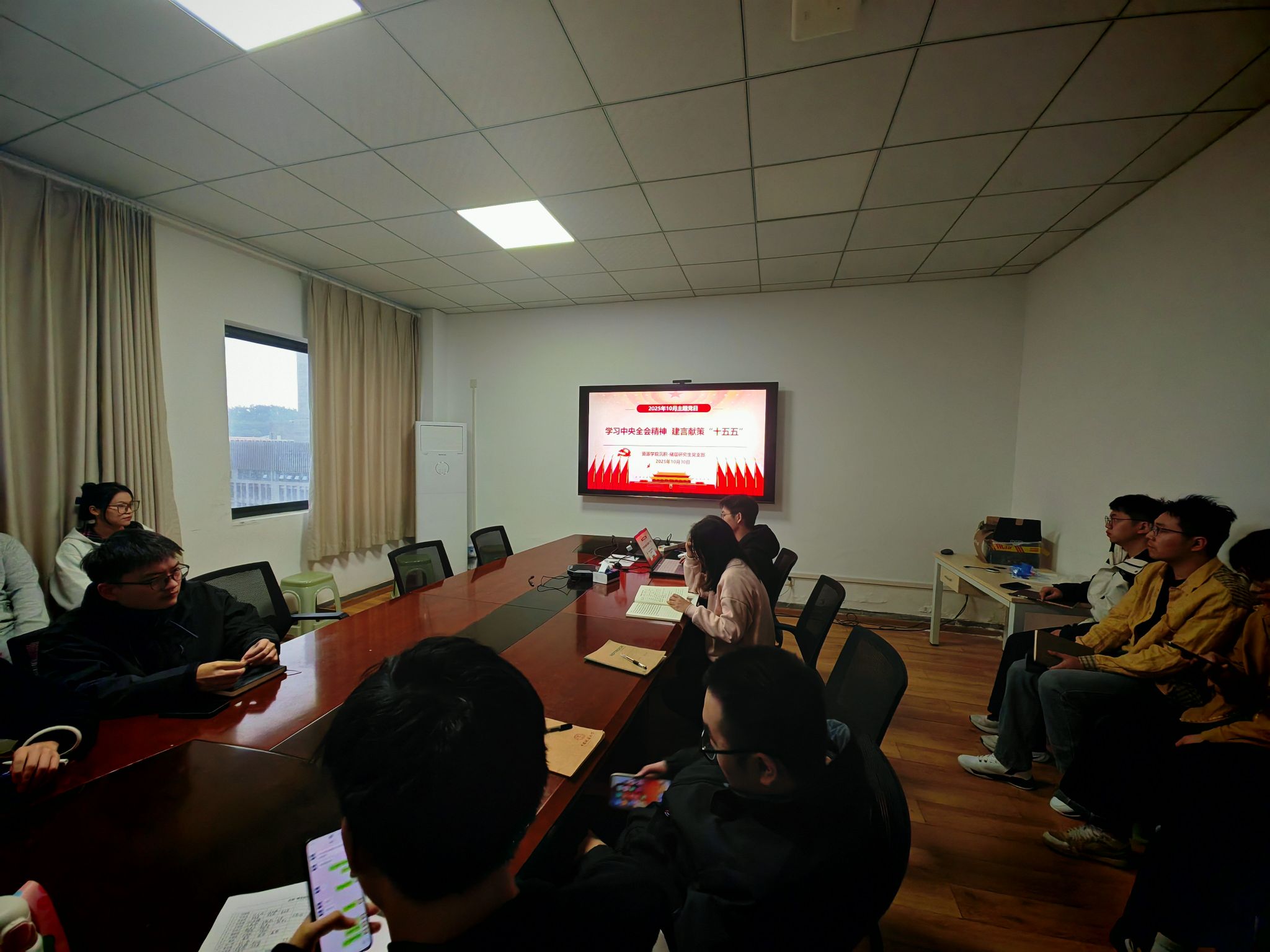 (通讯 张文康)2025年10月30日,tyc5997太阳集团沉积-储层研究生党支部在老珠宝楼801会议室举行十月主题党日活动。活动以“学习中央全会精神,建言献策‘十五五’”为主题,结合公司“红星引领计划”,深入开展政治理论学习与党员履职交流。支部全体党员和部分入党积极分子参加。