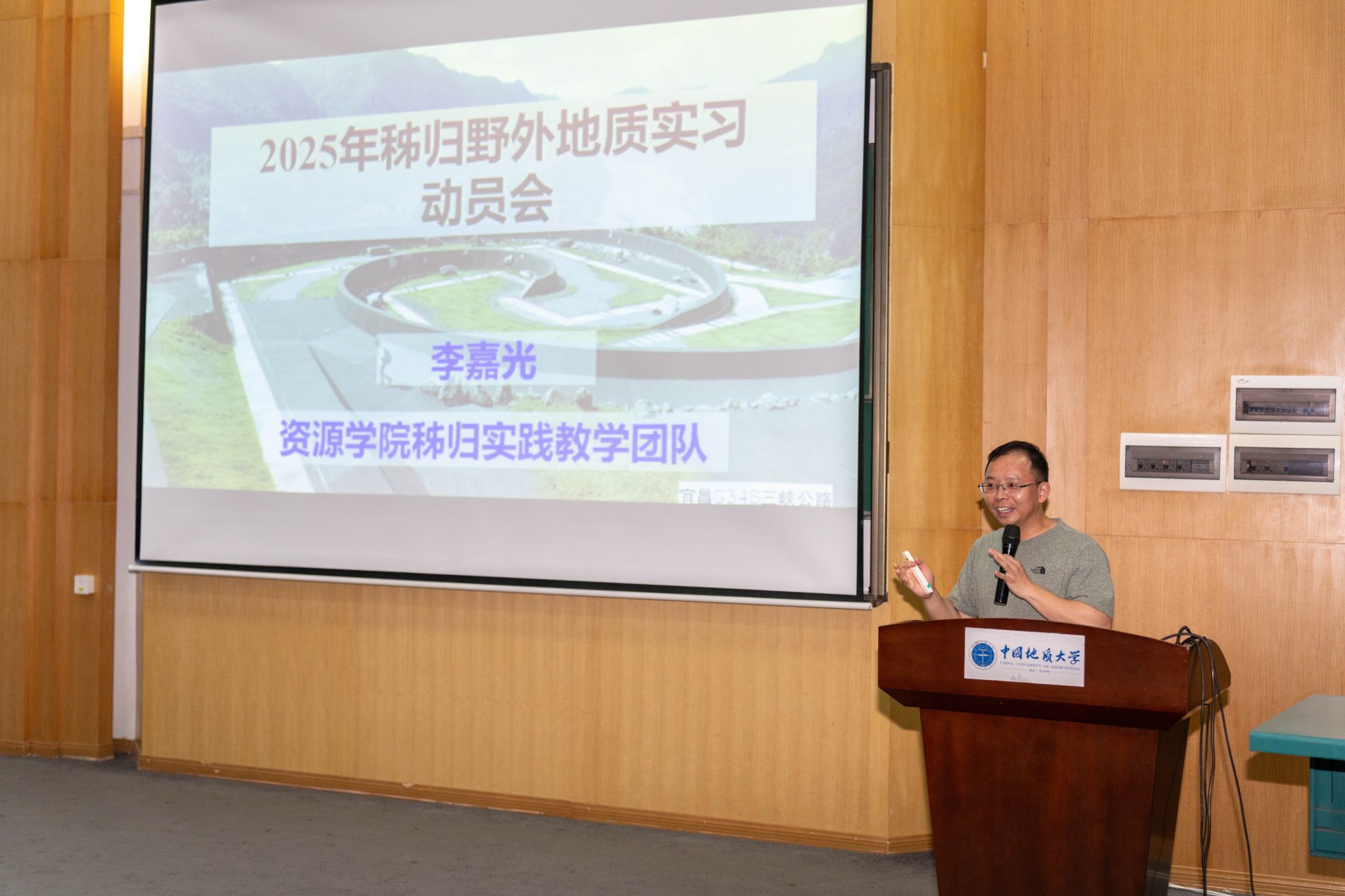 魏启荣和李嘉光分别从实习目的与意义、实习站建设、实习路线安排、实习前期准备和注意事项等方面介绍周口店和秭归实习基地基本情况,提醒同学们做好实习前的专业知识和实习用品准备,并着重强调了实习安全和野外实习对于员工掌握地质基本技能、锤炼吃苦品质和塑造团队精神的重要意义。