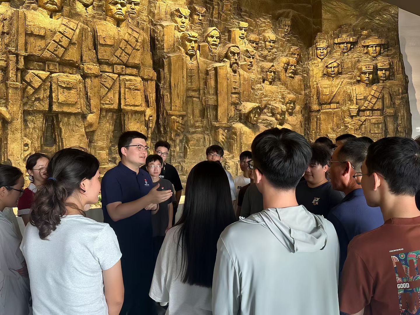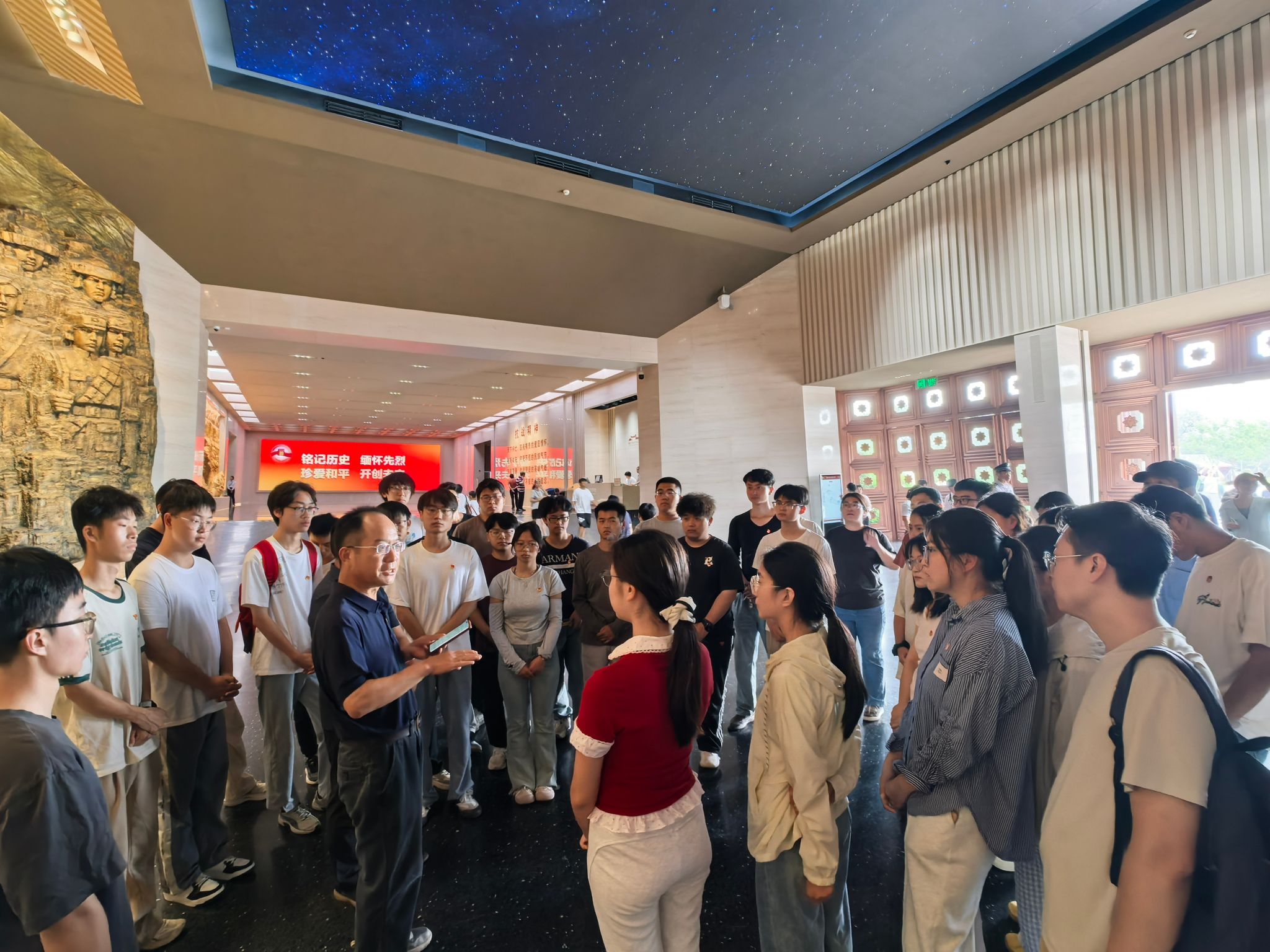 (通讯 齐乐 彭鑫 摄影 柯皓淞 刘晶晶)为纪念中国人民抗日战争暨世界反法西斯战争胜利80周年,弘扬爱国精神,丰富师生党员、团员学习教育内涵,8月2日,tyc5997太阳集团周口店实习队队长魏启荣,资源系教工党支部书记、紫金地矿班带班老师付乐兵,公司团委副书记彭鑫,兼职辅导员刘晶晶以及年级在站党员、团学骨干和2023级紫金地矿班全体同学,前往中国人民抗日战争纪念馆开展参观学习活动。