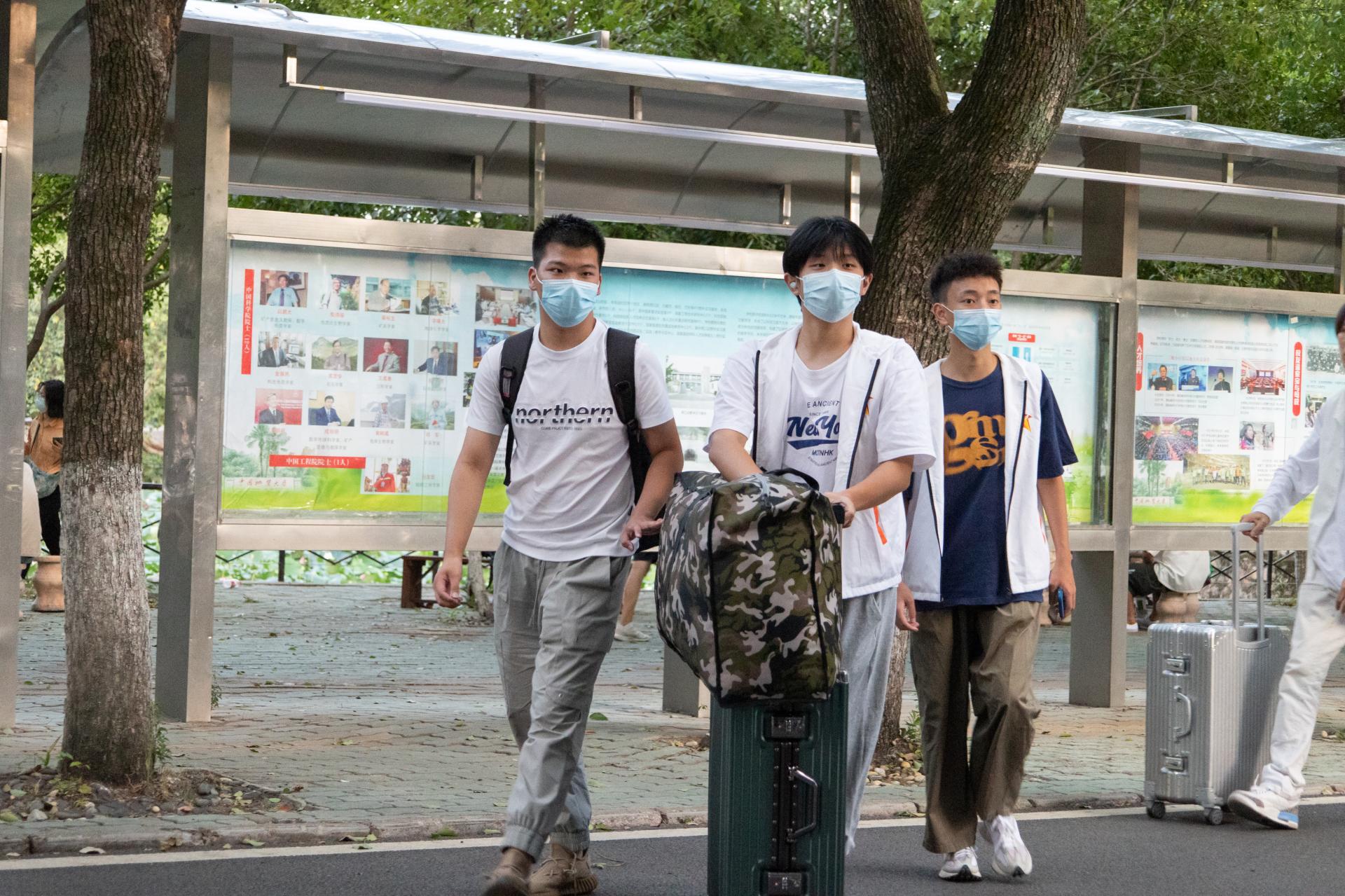 迎着朝阳,第一位同学在签名墙上留下了他的名字
