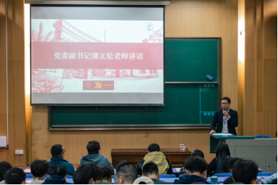 霍少孟带领同学回顾了春季学期年级大事、系统剖析了大一学年学习情况,介绍了《第二学年综合测评实施细则》修订情况,并从感触伟大时代荣光、推进开展生涯规划、加强学习科研风气建设等方面介绍了本学年工作规划。他以《凝心静气,在享受平凡中成就不平凡的老员工活》为题,从希望大家关心父母、增强发展的忧患、彼此的思维碰撞、理性思维、集体观念、持久快乐、怎样保持公信力、如何做好辅导员工作、未来驶向何方、什么才是人生的光十个方面介绍近期所思所想。对于在公司公司各级员工组织任职的同学,他讲到,“担当责任在于,不轻易选择,更不轻易放弃”。他讲到,大家要结合70周年校庆,学习校史校情,积极参观、有组织参观校史馆和70周年校庆特别展览。