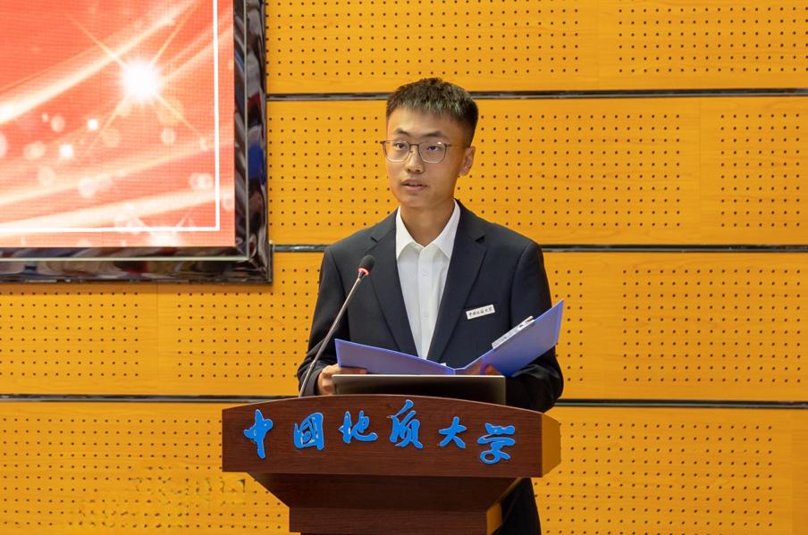 新生代表、02D236班王嘉桐同学分享了自己与地大结缘的故事,畅享了未来的老员工活,倡议同学们立足于时代要求,求实进取,砥砺前行,主动担当服务和保障国家资源能源事业安全与发展的历史重任。