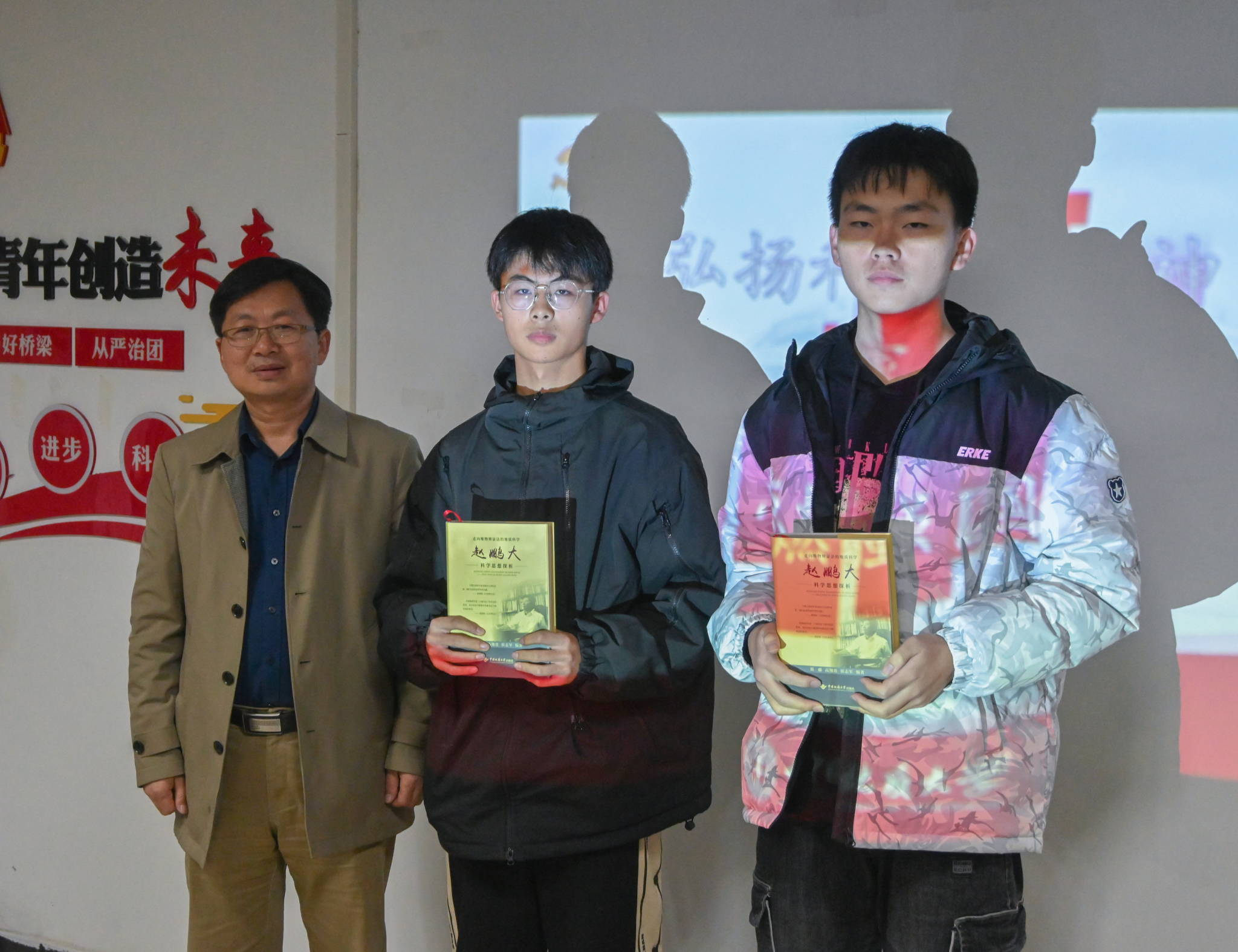 出版社副社长余江涛勉励同学不忘来时路,坚定未来路。他表示,大学之大,在于大师,公司教授、老师的渊博知识构成了我们的知识框架和底座,是宝贵的精神财富,而公司出版社让他们的精神、事迹撰写成了书籍,延续起这样伟大而渊博的文明,此次出版的《赵鹏大科学思想探析》书中讲述赵院士地质人生、地质科学思想、地质教育思想和地质哲学思想,有助于理工科同学们在钻研专业奥秘的同时也能陶冶情操,帮助同学们全方位发展和精神理想的觉悟与升华。随后,余江涛老师为02D235班同学赠书。