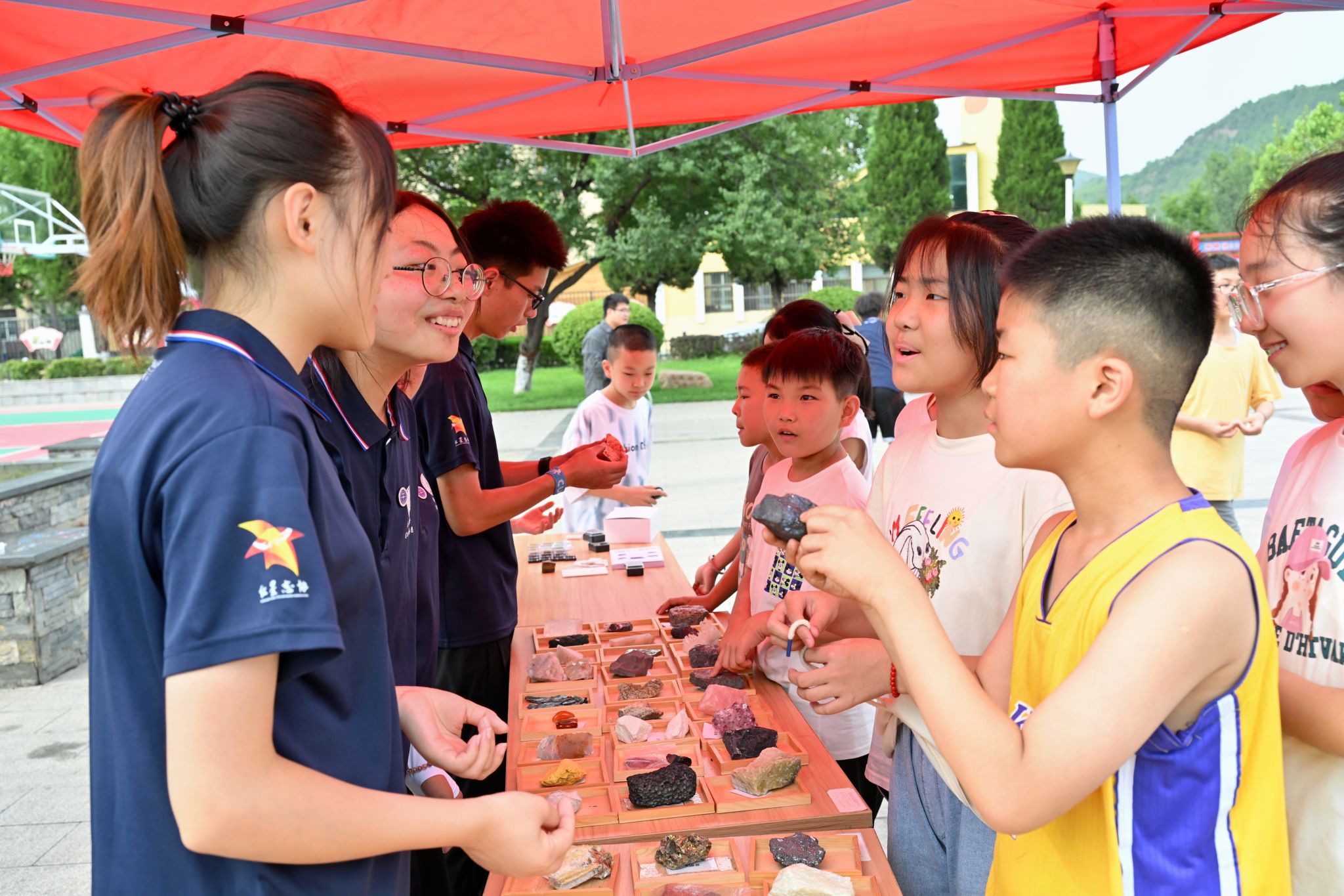 实践体验区让科普更加生动有趣。团队成员为参与者讲解放大镜的使用方法,用别样的视角观察矿物,带领小朋友们用小刀、瓷板判断矿物的硬度,体验矿石鉴定的乐趣。