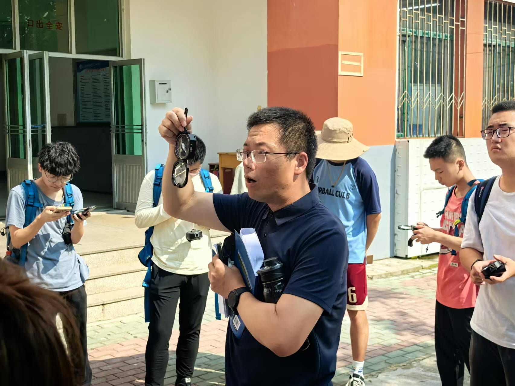 集中教学结束后,由带队老师带领各班级到操场进行分班教学,在老师们的指导下,同学们进行罗盘使用实操训练,调校磁偏角、测产状、测方位……同学们认真聆听、不断尝试,并进行实际操作演示。