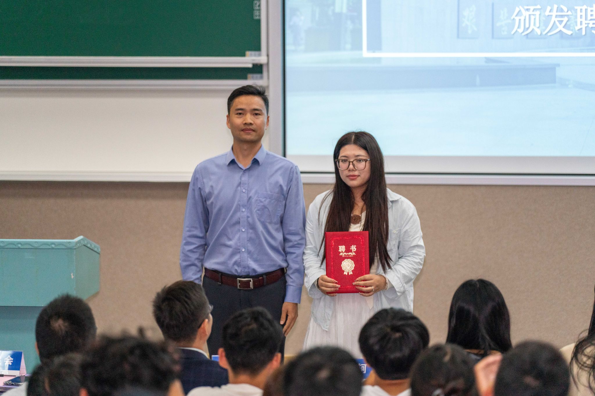 副经理李占轲为员工课堂巡查组代表颁发聘书。员工课堂巡查组由各班级驻班党员构成,常态化深入课堂了解员工上课情况,强化课堂管理和员工纪律意识,营造良好学习氛围。