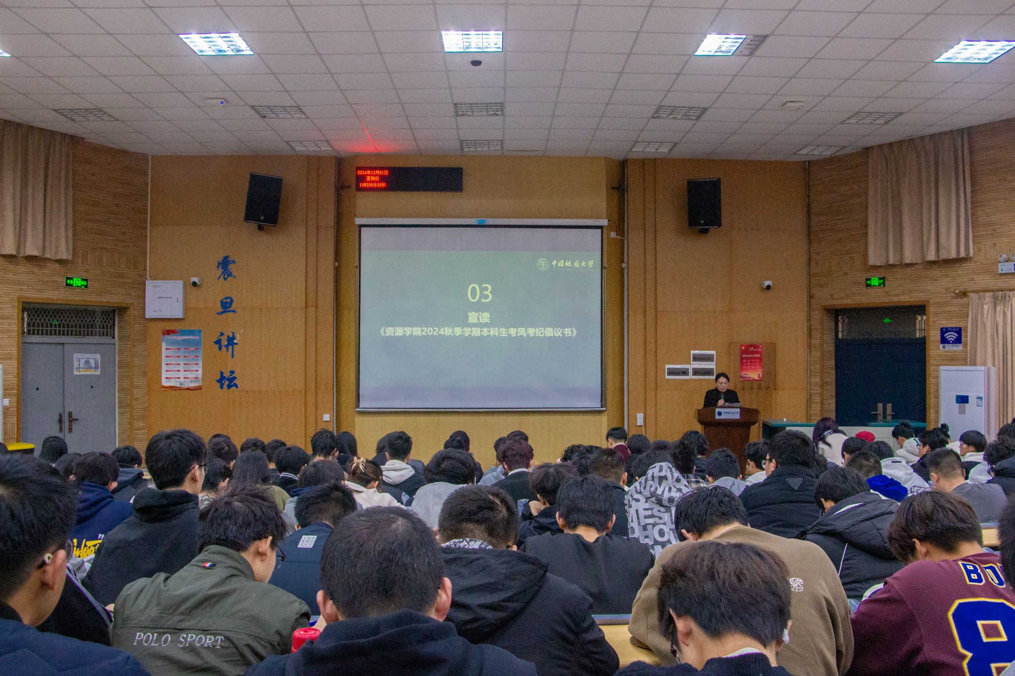 周红宣读《2024秋季学期本科生考风考纪倡议书》。她希望,同学们做好复习规划、重视基本概念、善于总结凝练、严格考试纪律、涵养阳光心态,在大学的舞台上尽情展示,以严谨的态度、扎实的基础、良好的心态迎接这次挑战,遇见更加优秀的自己和集体。