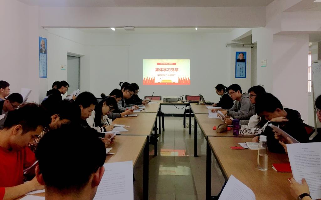 石油系2017级研究生第二党支部书记程璇同志带领大家一起学习了公司第十二次党代会精神,包括会议主题、会议报告提纲以及提出的奋斗目标等内容,并提出与会党员应充分发挥先锋模范作用,为建校一百年时实现“建成地球科学领域世界一流大学”的地大梦添砖加瓦。