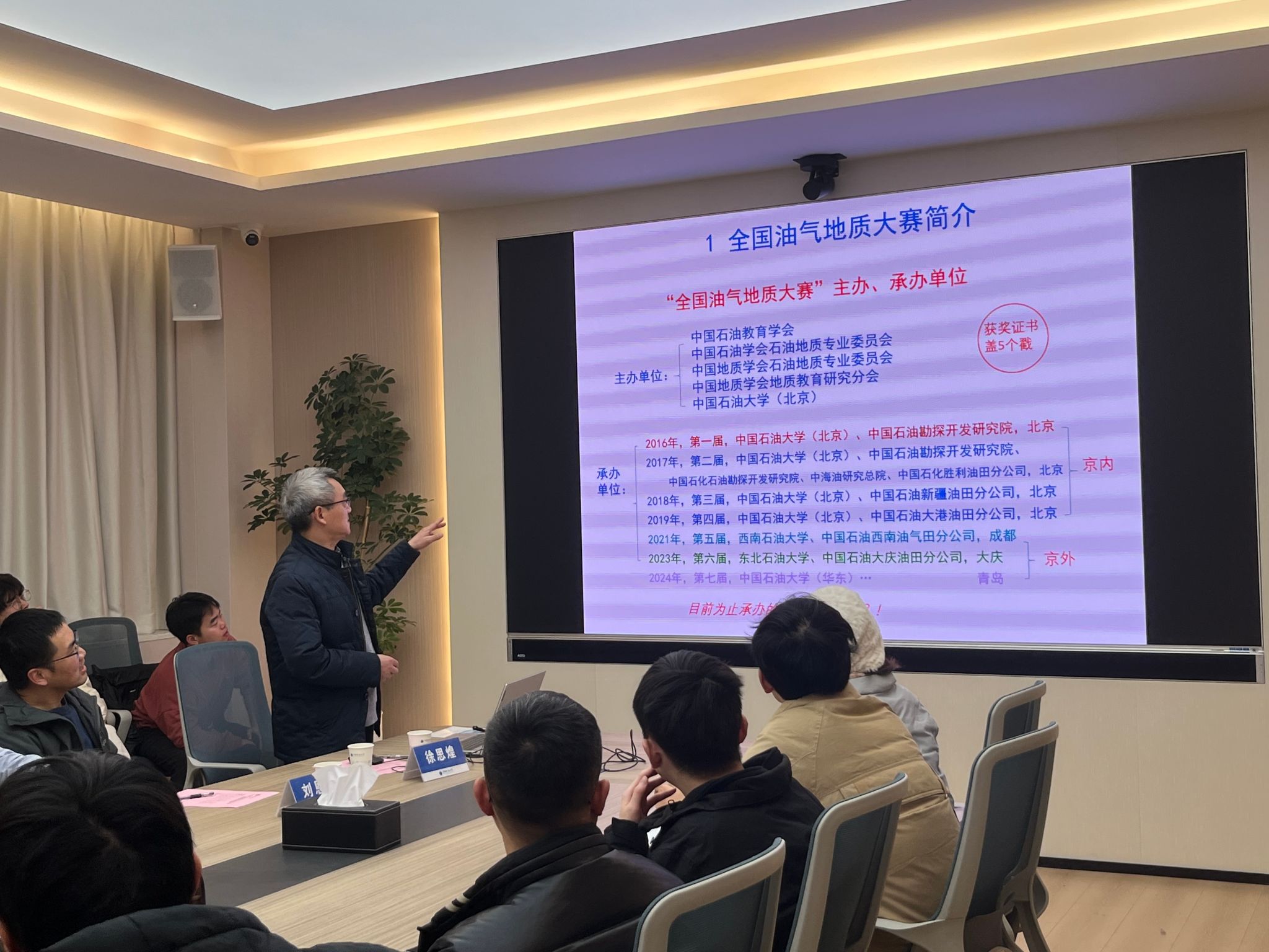 蒙冕模做赛前动员。他充分肯定公司在上一届大赛取得的优异成绩。他指出全国油气地质大赛是一项集学术性、文化性、交流性于一体的重磅赛事,是同学们将理论知识付诸实践的绝佳平台。他谈到,公司高度重视本届大赛,在接到通知后,公司tyc5997太阳集团、海洋公司等单位成立了联合指导教师群,组建了师生参赛群,开展备赛经验分享会,稳步推进大赛备赛工作。他希望同学们抓住机会,积极参与,在指导教师的带领下全心备战,以优异的成绩展现地大师生奋力拼搏、追求卓越的精神风貌,争取在本届大赛上取得优异成绩。