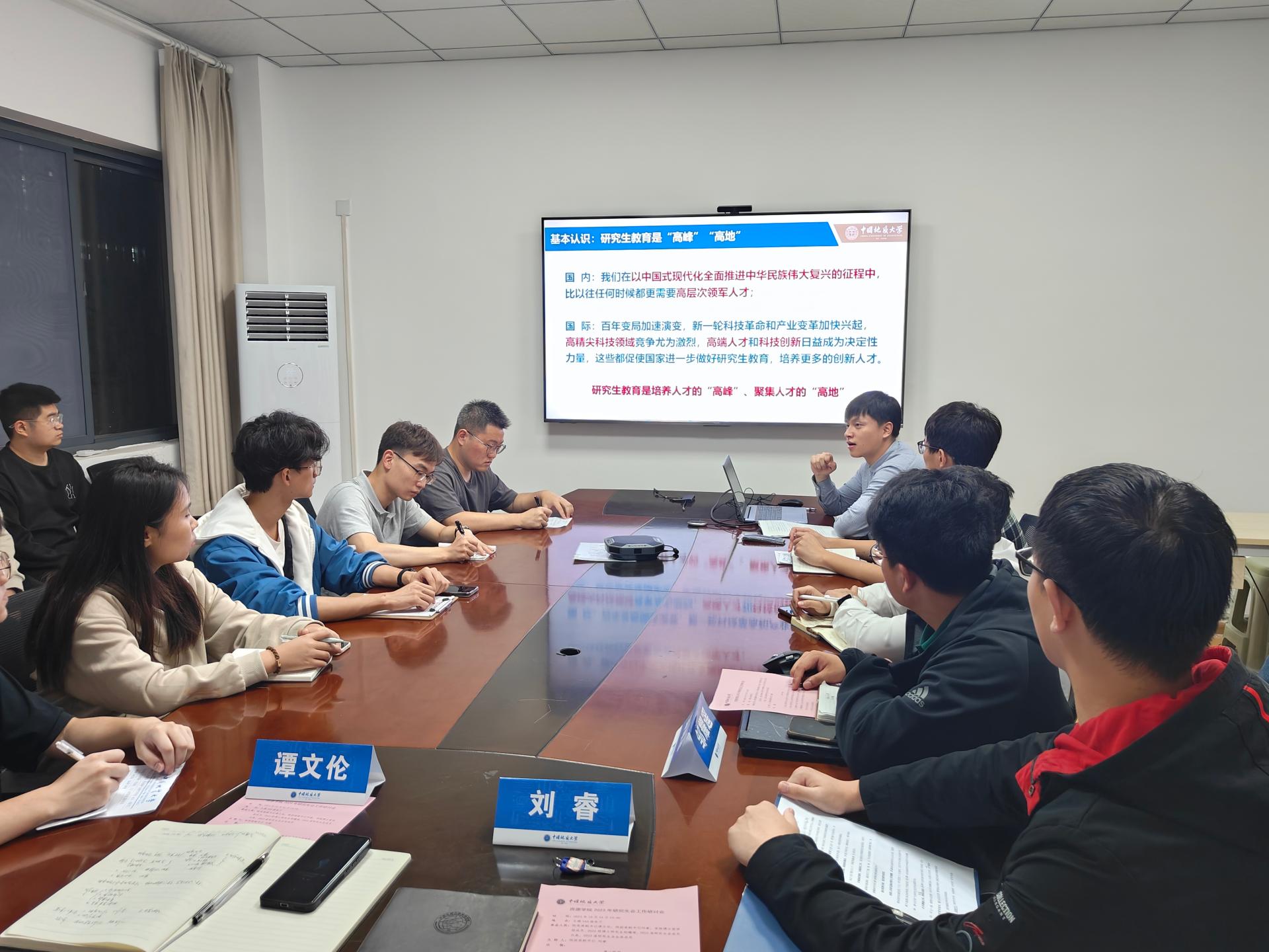 会议还就第十二次研究生代表大会、科技前言论坛组织、院领导接待日(研究生专场)等工作进行布置。