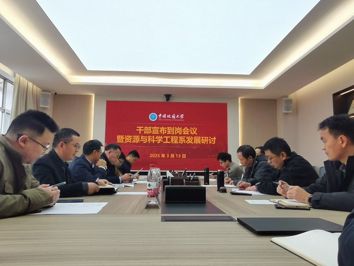 (通讯员 胡新露)3月13日,资源科学与工程系举行“干部宣布到岗会议暨资源科学与工程系发展研讨”,宣布新一届行政班子到岗,共同探讨资源科学与工程系未来发展方向和策略。资源公司党委书记汪再奇、副书记谭文伦,副经理朱红涛、沈传波、钟志、李占轲,资源科学与工程系全体教职工参加会议。资源科学与工程系支部书记付乐兵主持会议。