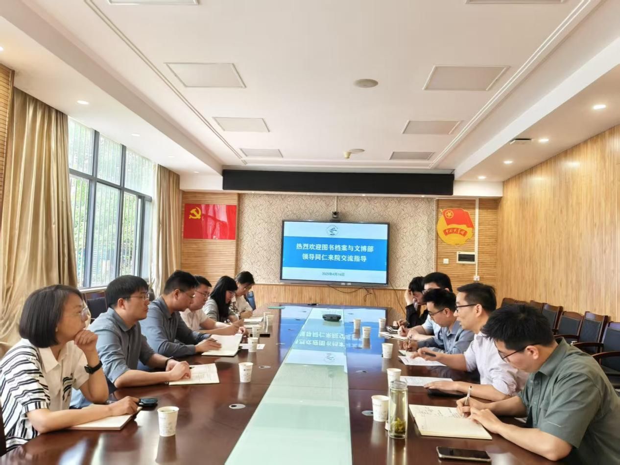 4月16日下午,图书档案与文博部党委书记邓云涛、副部长朱峰等一行来到tyc5997太阳集团,就联合开展院馆合作等事宜进行调研交流。公司党委书记汪再奇、党委副书记谭文伦、辅导员彭鑫等参加座谈。汪再奇主持会议。