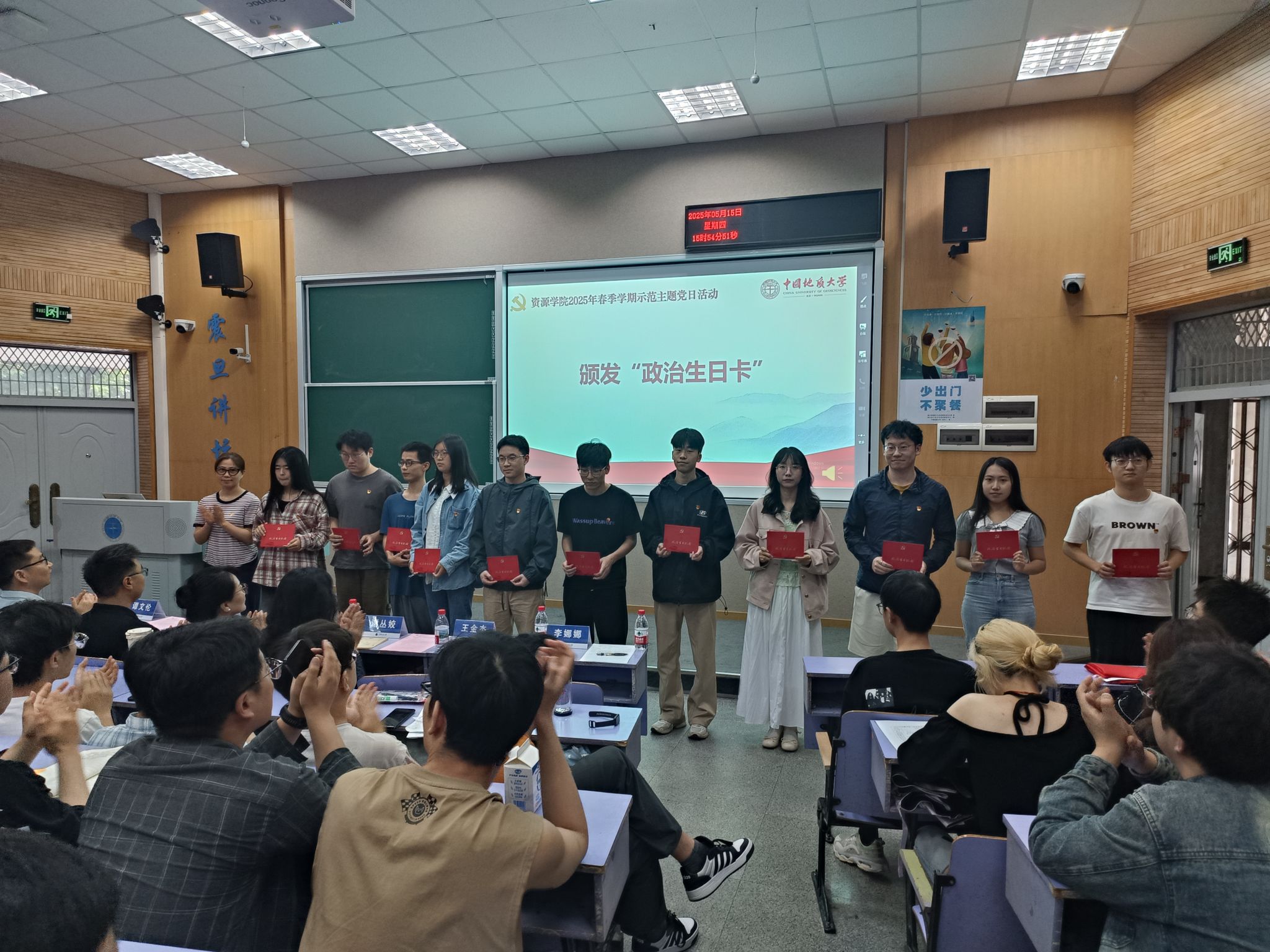 随后,员工党建指导员王金杰老师为党员颁发“政治生日卡”。