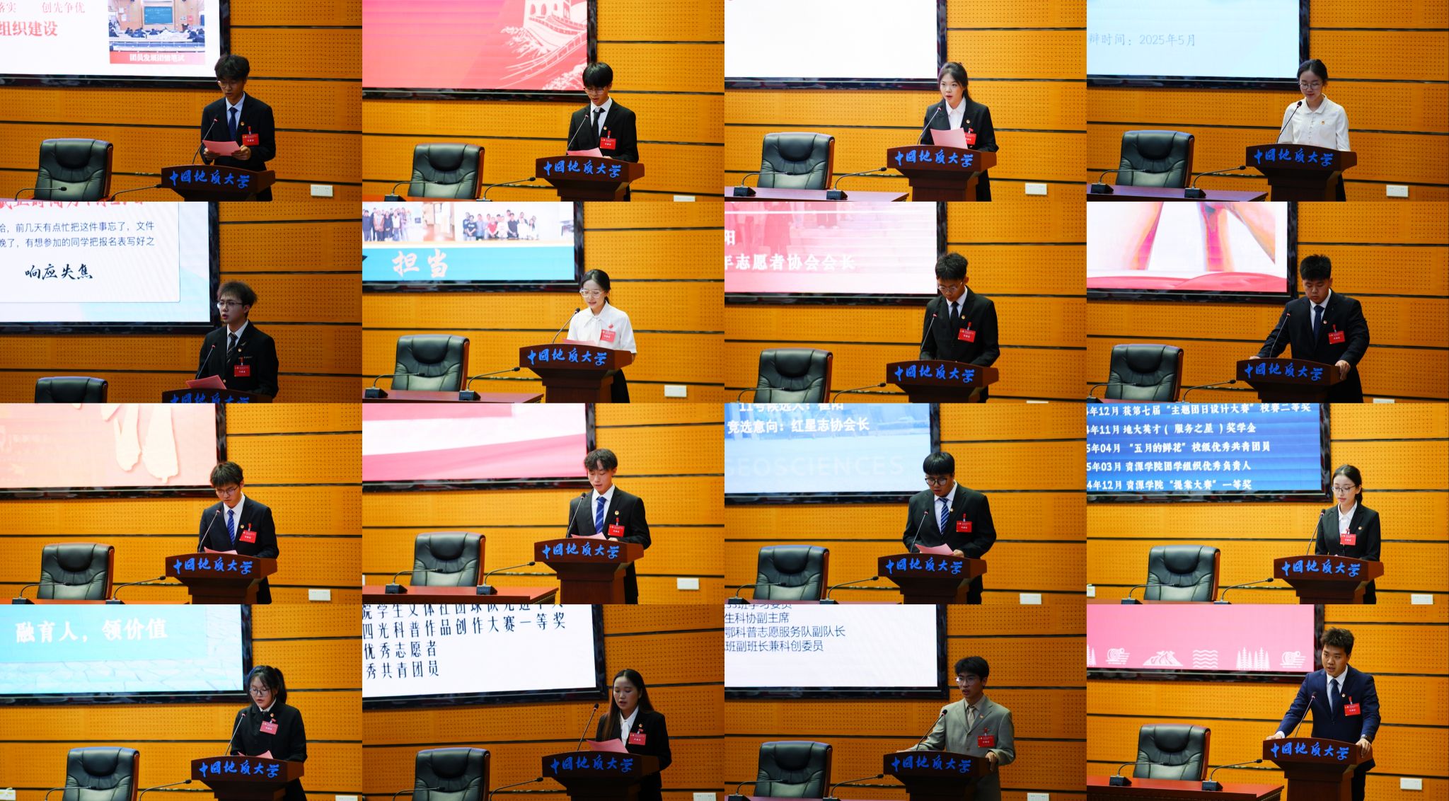 候选人依次上台进行答辩展示。与会代表通过民主投票方式,选举产生了第七届团委委员、第十五届学委委员、第十三届研委委员及2025届团学组织主席团成员。