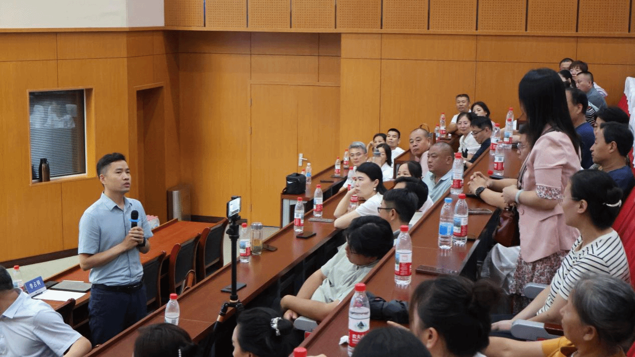 在交流发言环节,家长们提出关于员工安全保障、专业设置、就业方向、保研升学、实习就业等问题,公司领导针对家长关心问题进行细致回复。