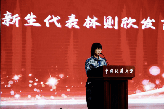 本科生新生代表林则欣发言。她提到自己坚定选择地大与tyc5997太阳集团,既有家族传承的影响,也有个人对资源领域的热爱与思考。她表示,公司 “艰苦朴素,求真务实” 的校训与个人理想高度契合,期待未来四年与同学们并肩同行,共同探索地球奥秘,在求知路上相互扶持、共同成长。