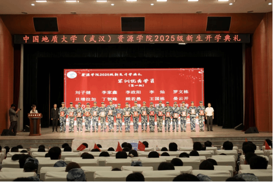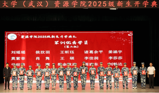 党委副书记谭文伦老师、副经理杨峰老师为2025级军训优秀个人颁发证书。