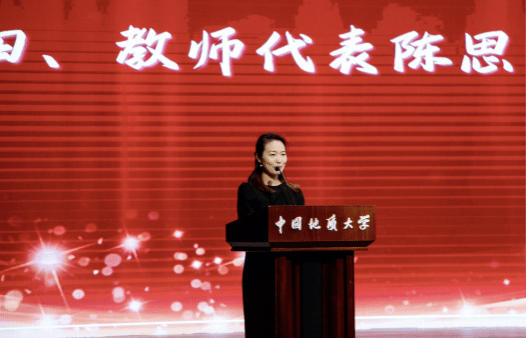 教师代表陈思发言。她指出,地球科学是一门 “读万卷书” 与 “行万里路” 紧密结合的学科。针对不同学段员工,她提出具体建议:本科生需尽快实现从被动学习到主动探索的转变,拓宽学术视野、培养批判思维;研究生要始终保持对科学问题的好奇心与专注力,在科研道路上深耕细作,以脚踏实地的态度走好大学每一步。