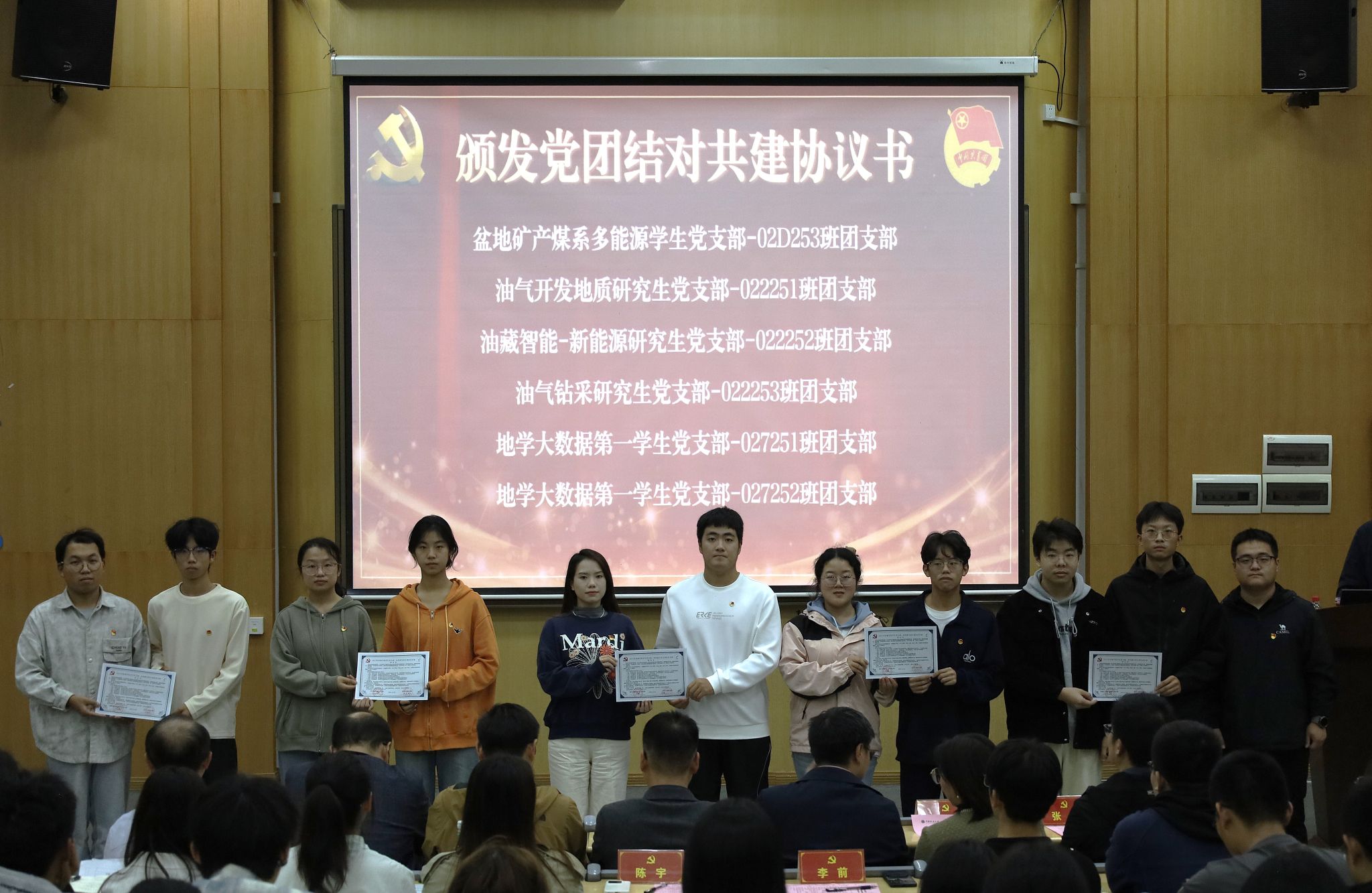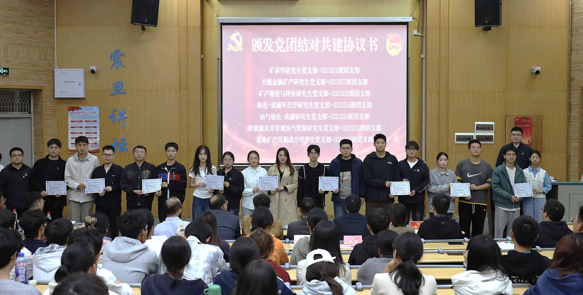 研究生工作部部长许德华作指导讲话。他首先对公司党团结对共建工作给予了充分肯定,指出此项工作是深化基层组织建设、推动党团协同发展、夯实人才培养根基的重要举措。随后,许部长对在座的同学们提出了三点殷切期望:一是要坚定理想信念,筑牢思想根基。希望同学们通过党课、团课和结对共建活动,不断提高政治觉悟,深刻认识到个人前途与国家命运的紧密相连,将资源报国作为青春奋斗的鲜明底色。二是要投身实践锻炼,做到学以致用。鼓励大家珍惜共建平台,主动在科研训练、学科竞赛和社会实践中摸爬滚打,将专业知识转化为解决实际问题的真本领,努力成长为知行合一的拔尖创新人才。三是要严守规矩纪律,涵养优良品格。 要求全体同学牢固树立规则意识,在日常学习、科研和生活中,坚决守住学术诚信和法律法规的底线。