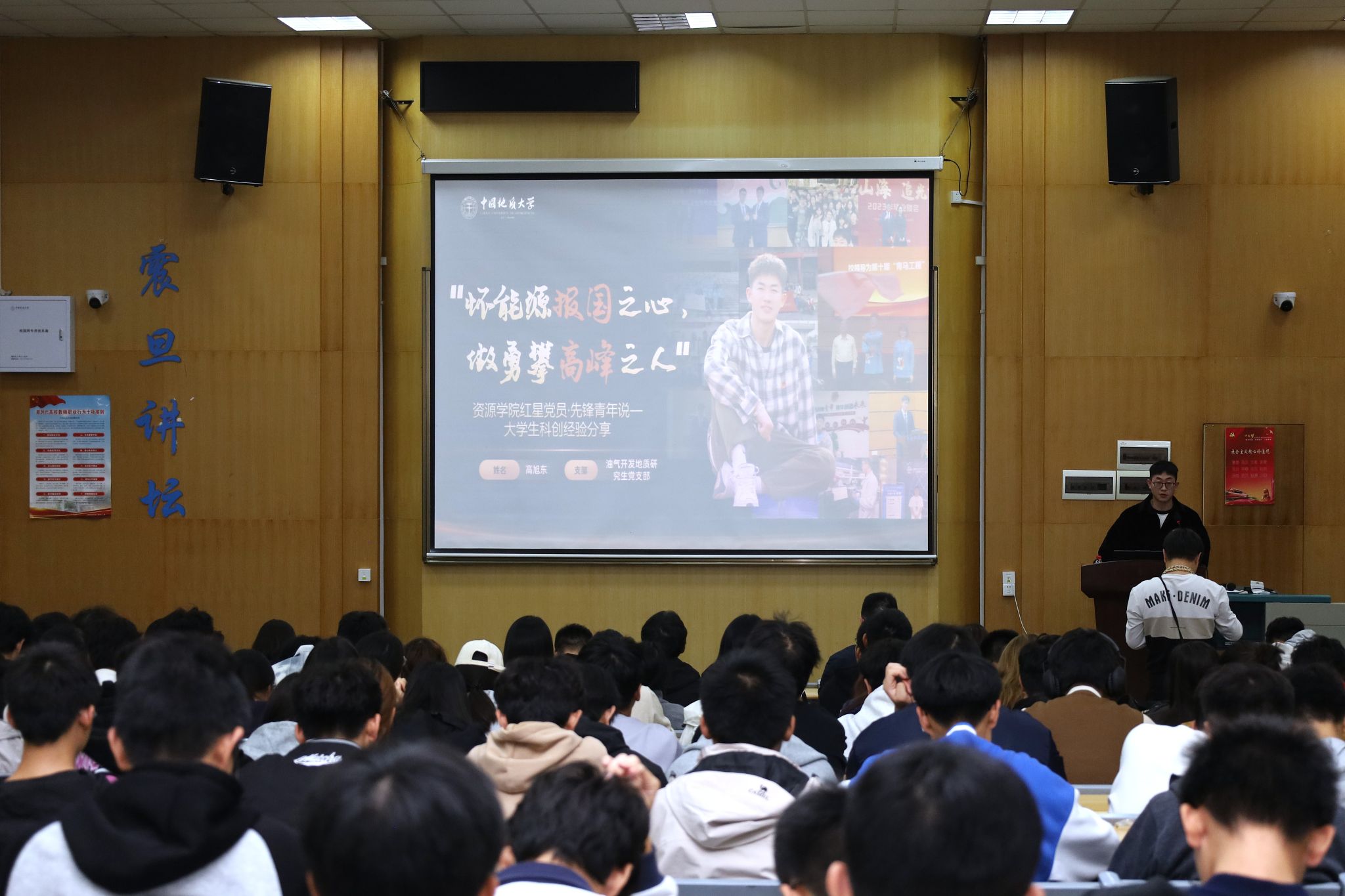 第十四届“挑战杯”全国银奖、2025年国家奖学金获得者、油气开发地质研究生党支部高旭东,以“怀能源报国之心,做勇攀高峰之人”为题从先锋示范、志愿服务、社会实践、科研攻关等四个方面分享了自己科创成长故事,鼓励不必畏惧探索荆棘,唯有扎根专业、勇于实践、敢于创新,方能为国家能源安全筑牢屏障,让青春在报国奉献中熠熠生辉!