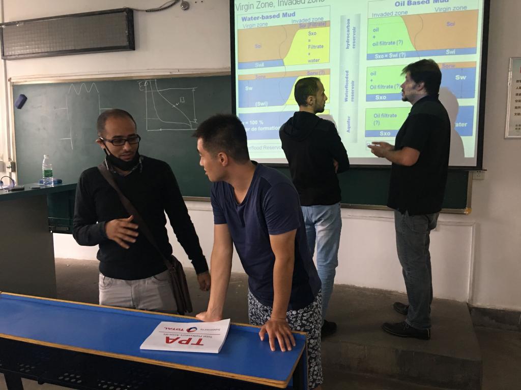 课程自9月18日开始,9月22日圆满结束。在授课过程中,Cyril CAUBIT教授结合其在道达尔公司的工作经验,从实际生产出发,为在场师生介绍了岩石物理特性及实验分析手段,特别针对渗透率、孔隙度、含水饱和度及润湿性等方面进行了详细介绍。各位学员在课堂上与Cyril CAUBIT教授积极交流、深入讨论,拓宽了国际视野,开阔了学术思维、增长了学术见识,课程取得了预期的效果。