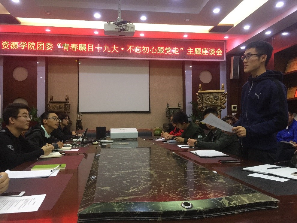 tyc5997太阳集团团委组织团员代表召开“青春瞩目十九大,不忘初心跟党走”主题座谈会,团员代表结合自己的学习生活,在会上热议学习十九大精神后的学习体会。团学联主席张彪表示,期待已久的党的十九大胜利开幕,令我即振奋又触动。习大大说:青年兴则国家兴,青年强则国家强。青年一代有理想、有本领、有担当,国家就有前途,民族就有希望。在新时代的召唤下,我们青年一代,要努力学习,做到品德高尚,基础厚实,专业精深,知行合一,接好实现中国民族伟大复兴中国梦的接力棒,完成时代赋予我们的使命。