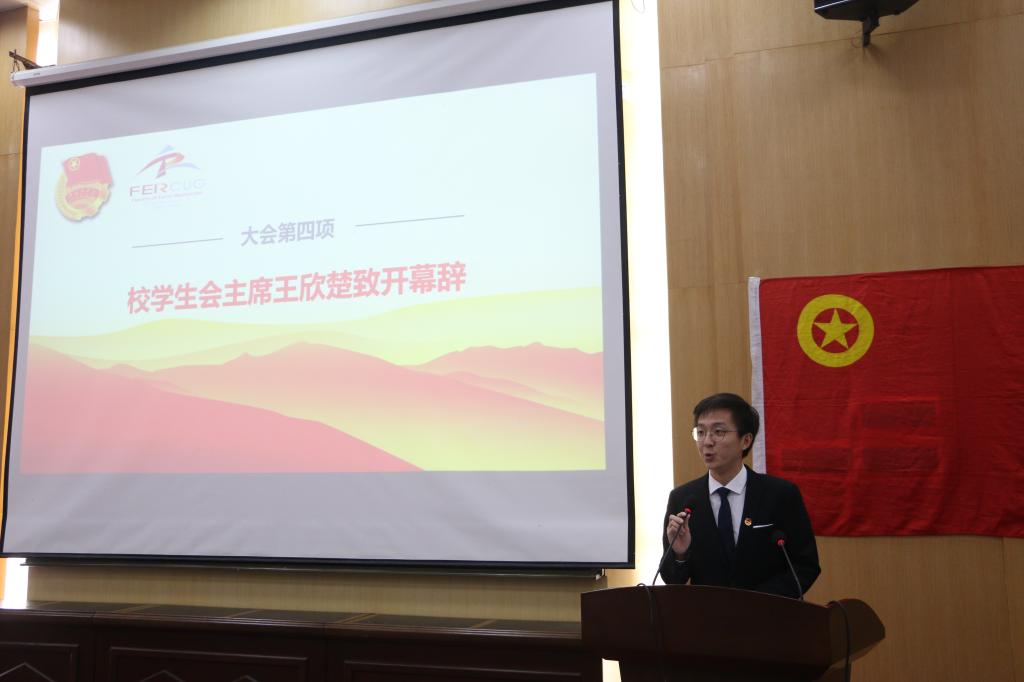 大会执行主席、院团委副书记谢雨彤介绍到会的领导嘉宾并宣读来自武汉大学电气工程公司、浙江大学地球科学公司、中国石油大学(华东)地球科学公司、tyc5997太阳集团(武汉)员工会、tyc5997太阳集团(武汉)研究生会等27封来自各兄弟高校、院系的贺信。