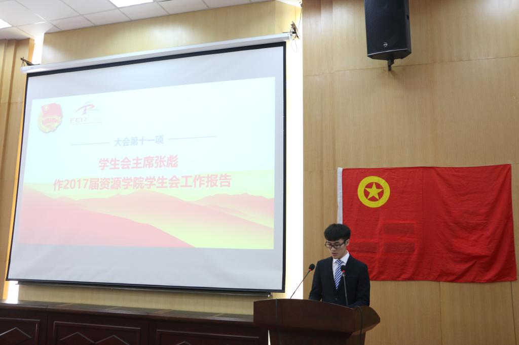 院员工会主席张彪作了题为《汇聚青春力量,谱写青年华章,为建设生机盎然长风破浪的员工会而扬帆起航》的2017届tyc5997太阳集团员工会工作报告。