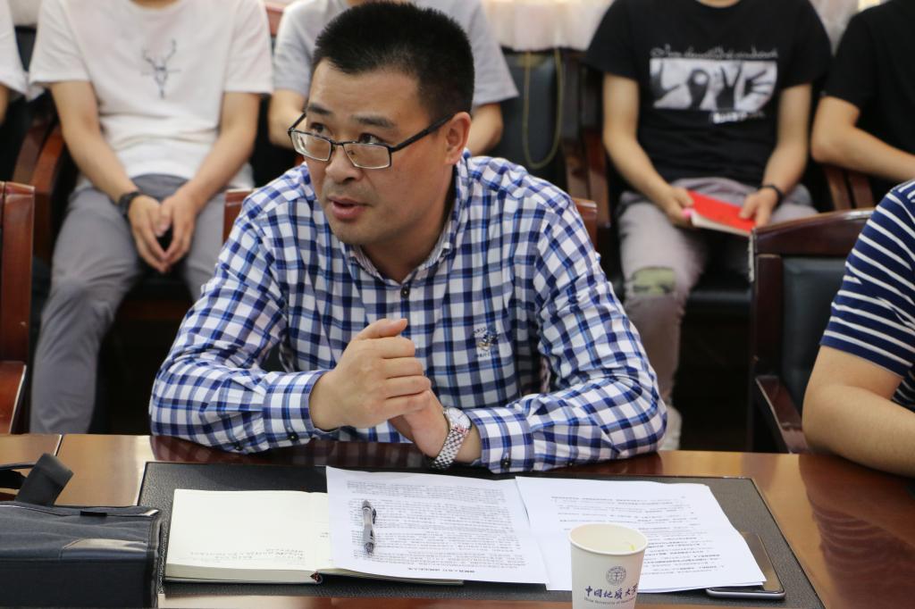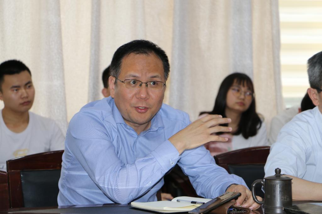 邬海峰介绍“国企领导上讲台、国企骨干担任校外辅导员”活动的背景及意义。他强调,此项活动是推进高校与企业联系的重要途径,广大同学应该把握与校外辅导员结对的机会,将课堂理论学习与企业实践锻炼相结合,为个人生涯规划提供支持。