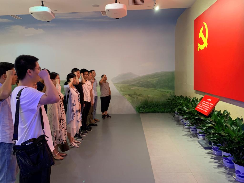 员工党员和教工党员分别在中央农民运动讲习所旧址的宣誓广场前和中国共产党纪律建设历史陈列馆宣誓室郑重宣誓:“我志愿加入中国共产党……”,全体党员再次重温入党誓词。