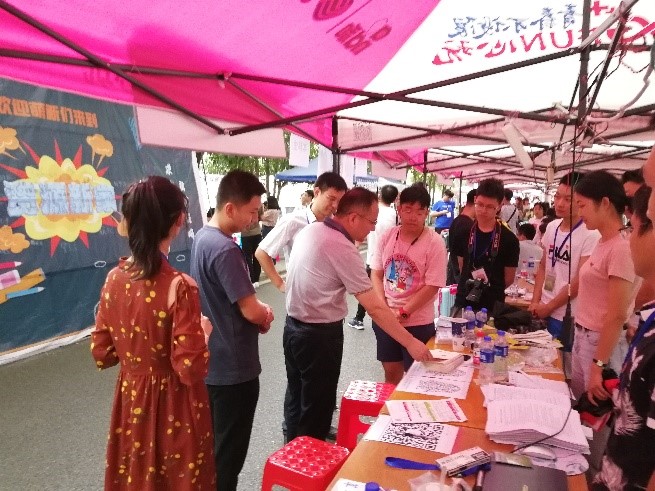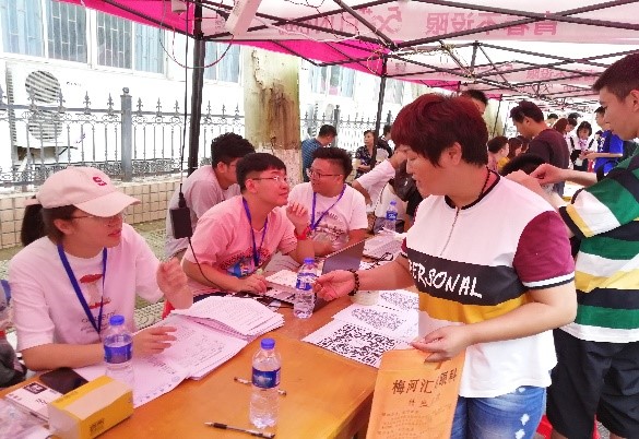 迎新志愿者们积极引导新生,帮助新生办理入学的各种手续。在迎新过程中,志愿者们耐心热情地回答新生和家长提出的问题,介绍公司及公司的情况。