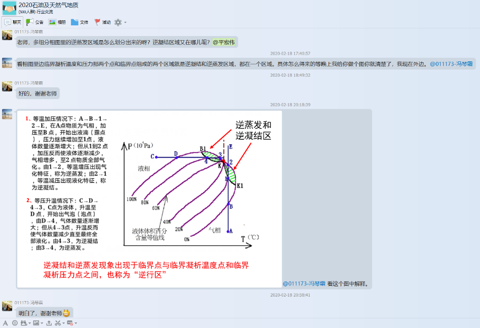 石油地质系平宏伟老师,作为石油地质教学组的青年骨干,承担兄弟公司《石油及天然气地质学D》的教学工作。在尝试超星平台建课不成功的情况下,最终采用腾讯会议进行在线视频讲课。讲课之前把PPT教案发到QQ群中让员工提前预习,每次授课90分钟,并穿插与员工间的现场互动,在课后将每节课重点和难点总结发给员工进行复习,并随时利用QQ群对员工不懂的进行答疑。网络教学整体上取得了较好效果。