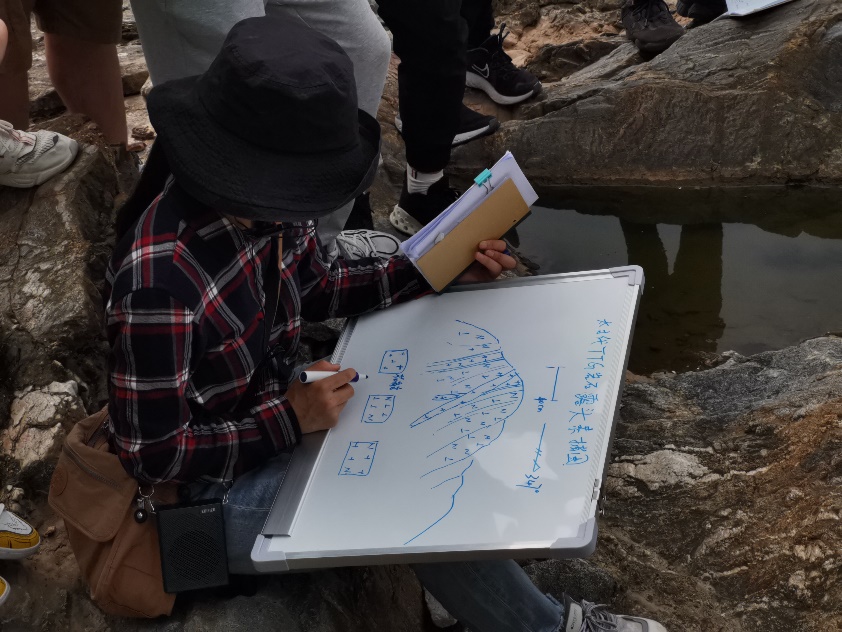 “在这炎炎的夏日,我头带草帽、身穿野外服、肩背地质包、包里放着罗盘、锤子、放大镜等地质人俗称的三大件,在媒人(实习指导老师)的带领下,与地质开始了一场令人终身难忘的初恋。”实习队蒋少涌老师在“武汉周边基础地质现象认知”讲座上动情说道。武汉黄陂、黄冈、黄石、咸宁都留下了资源人奋进的足迹和探寻的身影,在天堂寨水库湿地,同学们领略湖泊地质作用的沧海桑田;在黄石矿山公园,同学们感受到中国第一支大型地质勘探队(429队)的地质精神;在一个个风景名胜,同学们体悟到敬畏自然、天人合一的崇高情怀。经过本次实习,同学们在识证自然、初上征途中感悟地质;在蝉鸣为伴、锤身炼心中收获成长;在步入云林、求石古今中漫步自然,既掌握基本地质技能,也培养地质思维,更亮出资源学子昂扬的精神风貌。