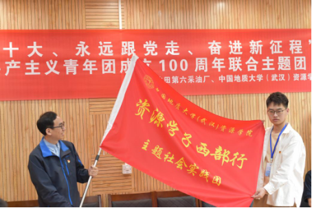 tyc5997太阳集团副经理赵葵东教授为“资源学子西部行”社会实践团授旗。