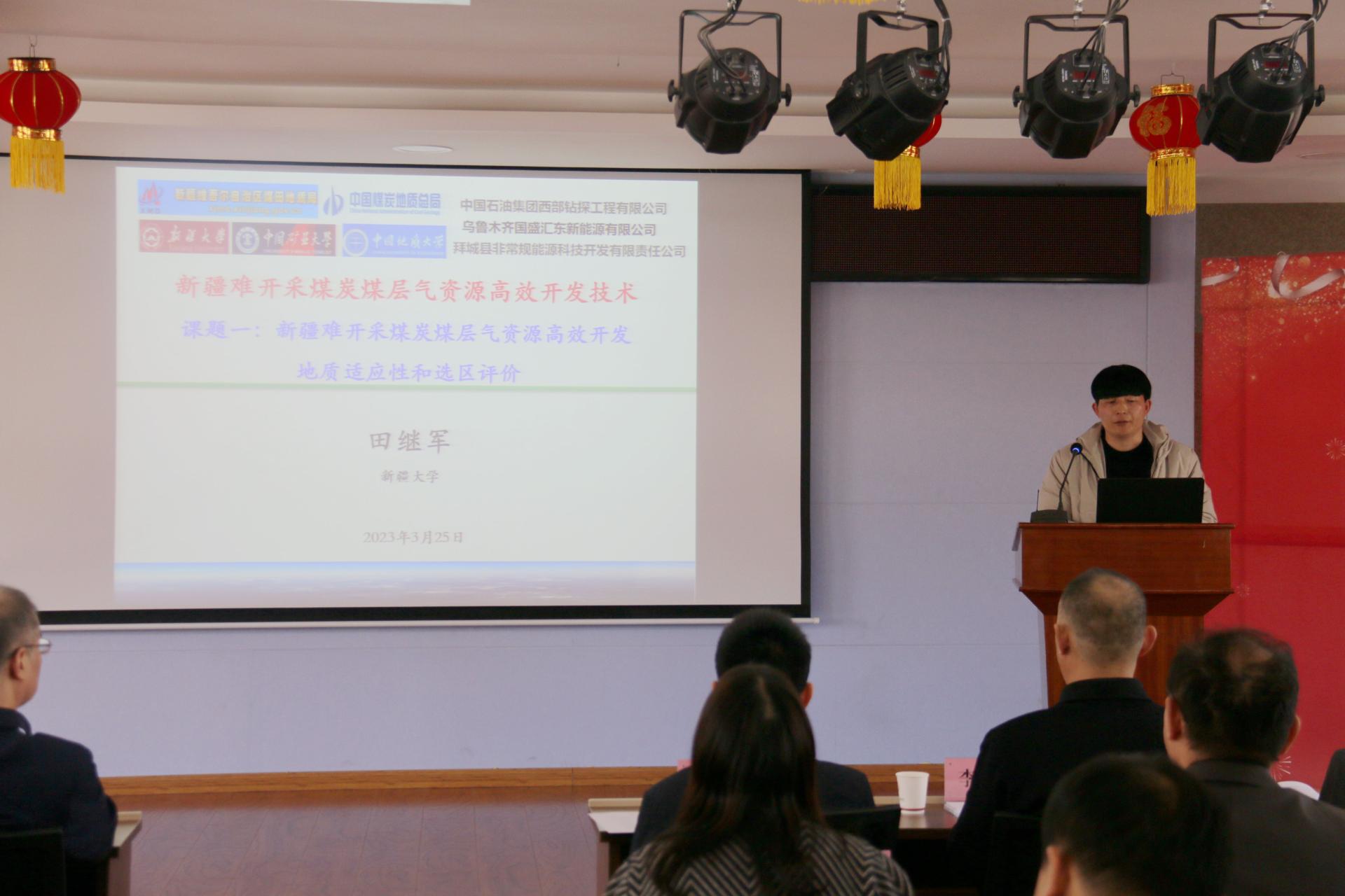 该重大科技专项由新疆煤田地质局一五六煤田勘探队牵头,tyc5997太阳集团(武汉)、中国矿业大学(徐州)、新疆大学、中国煤炭地质总局勘查研究总院、乌鲁木齐国盛汇东新能源有限公司和拜城县非常规能源科技开发有限责任公司等单位共同承担。项目起止时间为2023年1月1日至2026年12月31日,经费为6000万元,其中自治区财政专项经费2000万元。公司田继军教授受聘副项目长,同时担任课题一“新疆难开采煤炭煤层气资源高效开发地质适应性和选区评价”负责人。