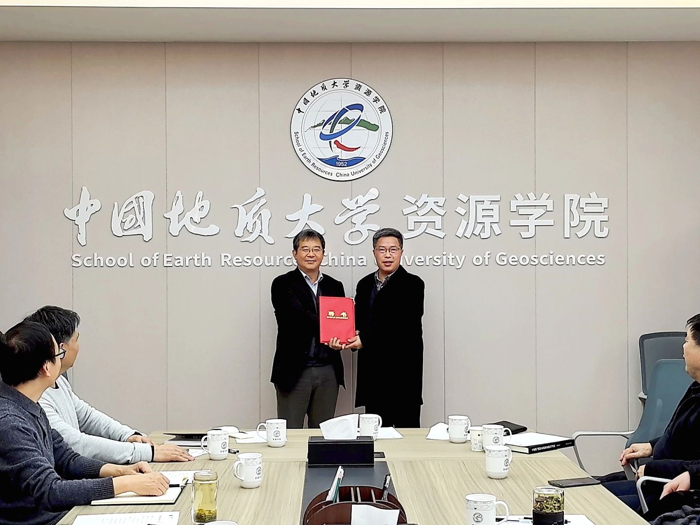 王华为何治亮教授颁发“地大学者”学科领军人才聘书