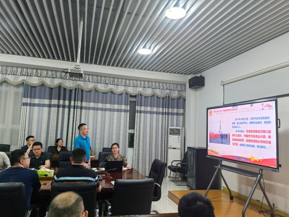 石油地质系党支部书记胡守志主持联学联建会议。会上,勘探开发院资源储量所党支部书记、所长谢晓军领学习近平总书记在视察胜利油田的重要讲话、给山东省地矿局第六地质大队全体地质工作者的重要回信精神。他谈到,能源资源是国家重大战略需求,高校和科研机构要增强使命意识,深化务实合作,推进优势互补,努力为国家能源事业发展做出更大的贡献。