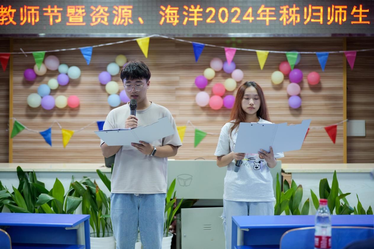 (通讯 陈权 管晨璐;摄影 李卓华 后亚琴)在金秋送爽、硕果累累的季节里,我们迎来了第四十个教师节。9月10日晚,tyc5997太阳集团与海洋公司的师生们欢聚一堂,在秭归实习基地共同举办“庆祝第40个教师节暨资源、海洋2024年秭归师生联欢会”。tyc5997太阳集团员工唐果、海洋公司员工张灿担任晚会主持。